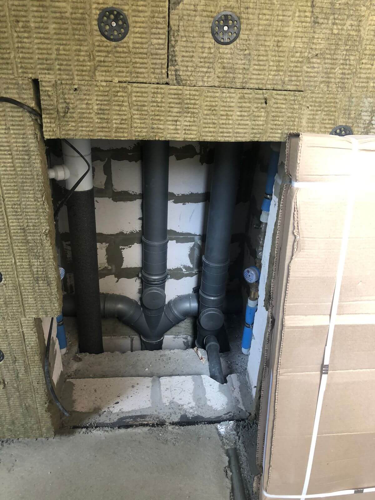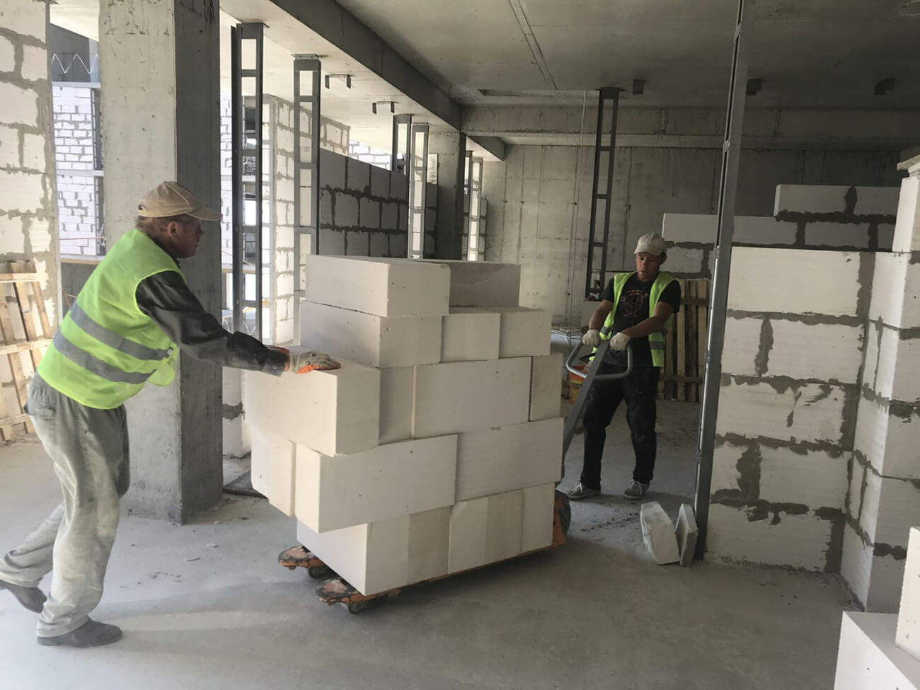 - в этих же блоках идет кладка стен, монтаж сетей внутреннего водопровода и канализации;