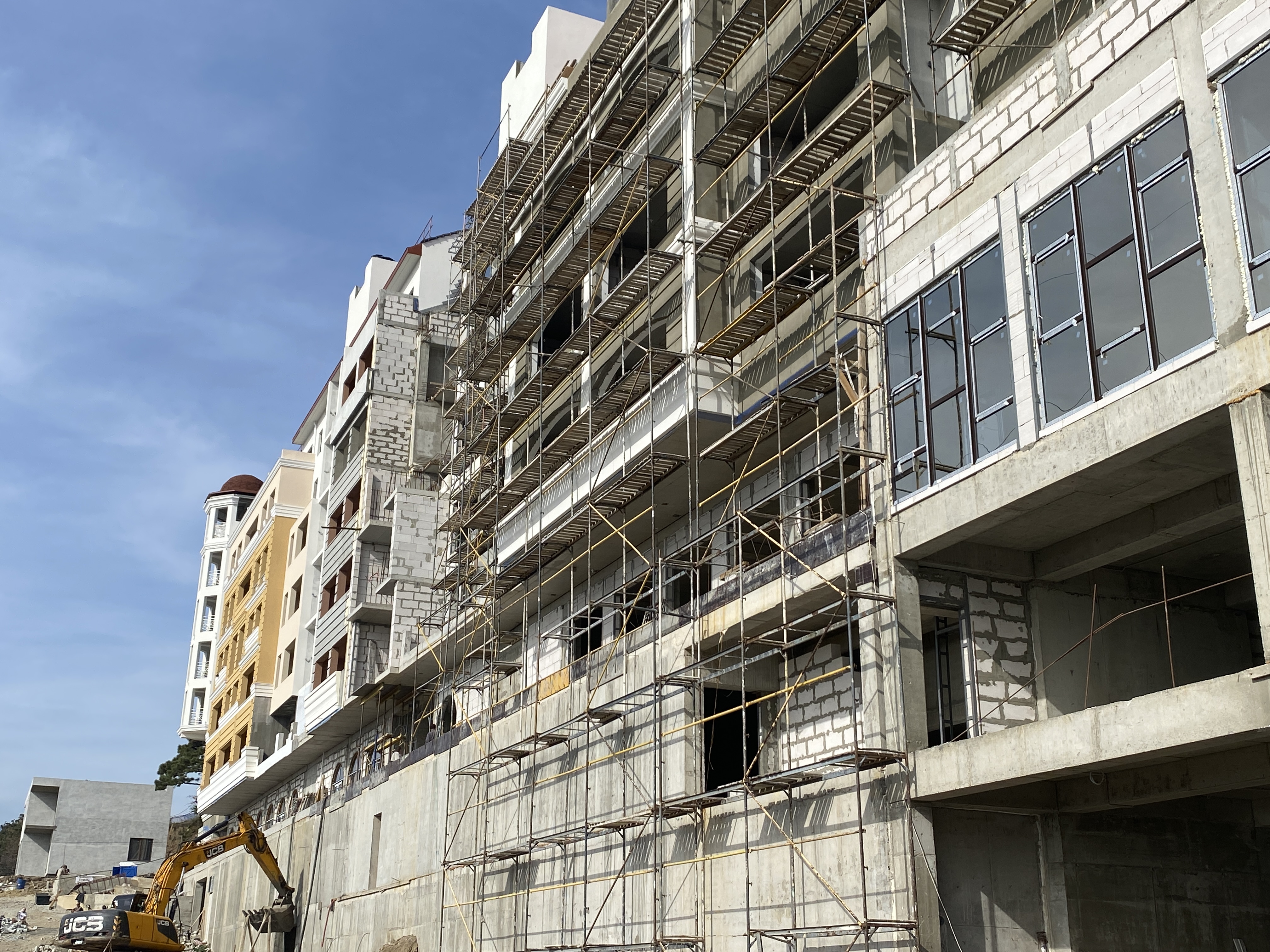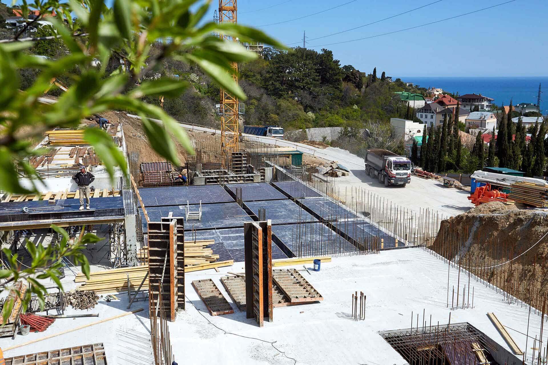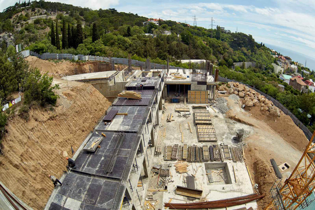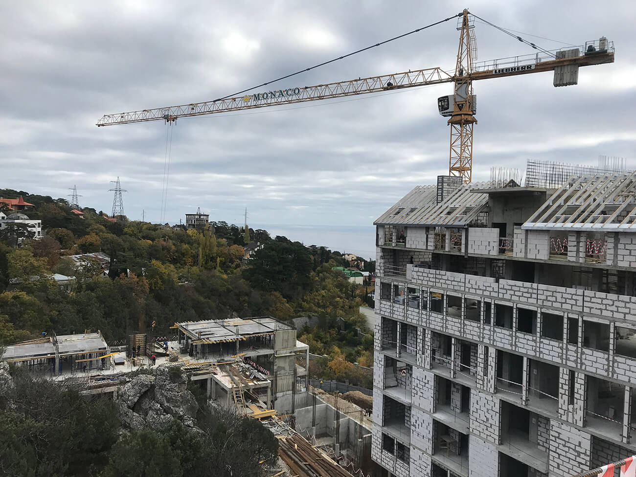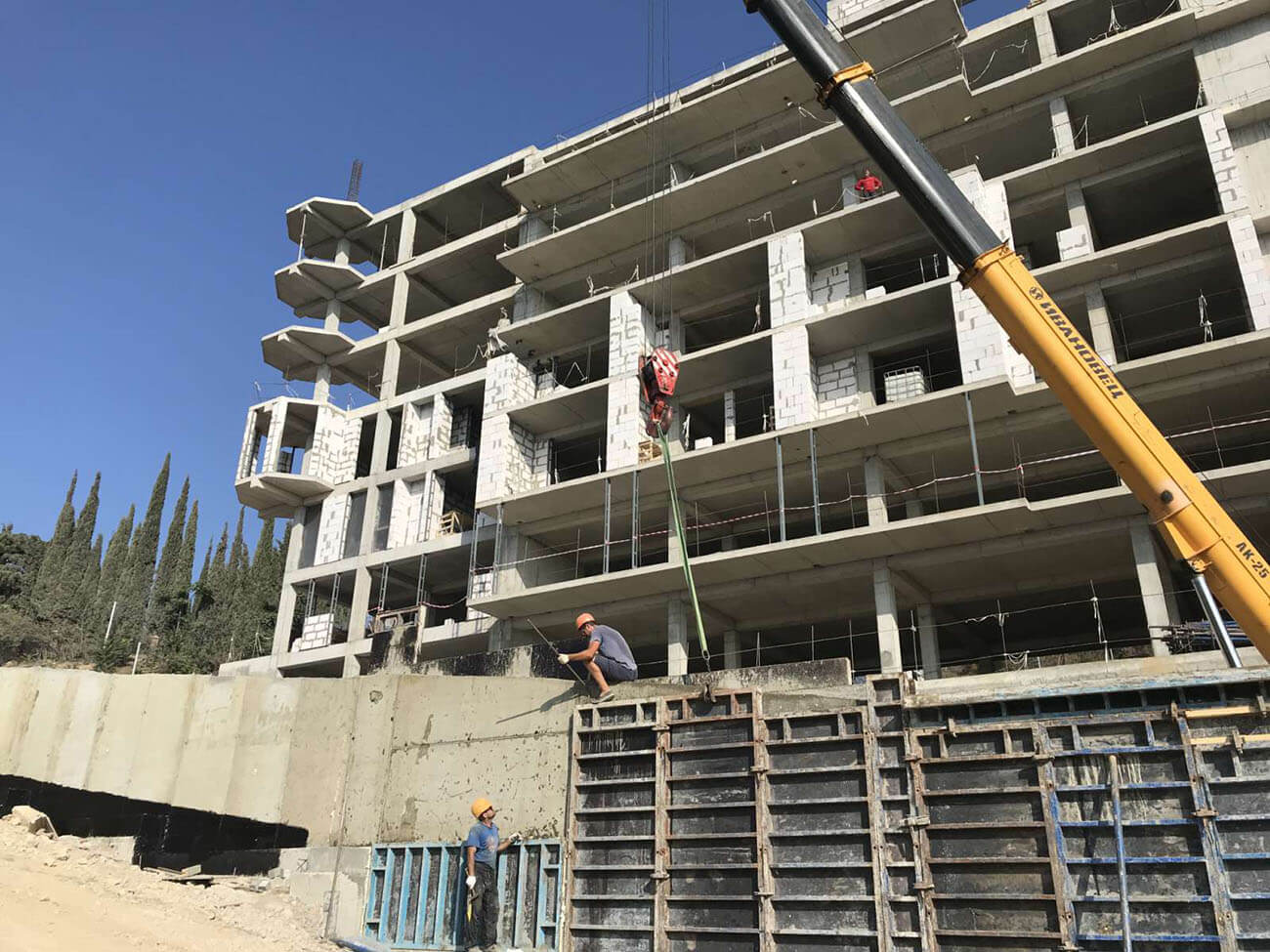 С октября запрет властей на производство строительных работ на Южном берегу Крыма во время курортного сезона сняли и на площадке жилого комплекса работа закипела с новой силой!