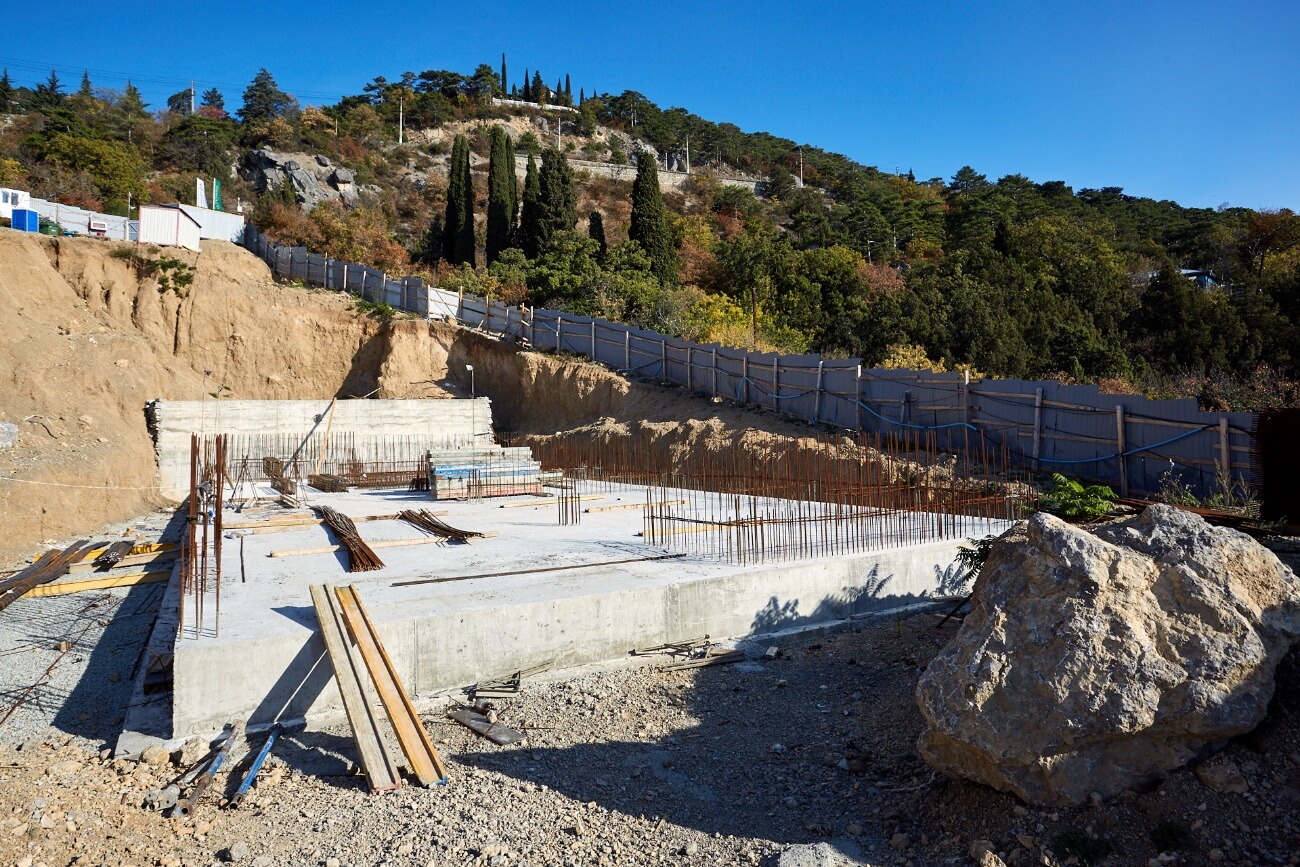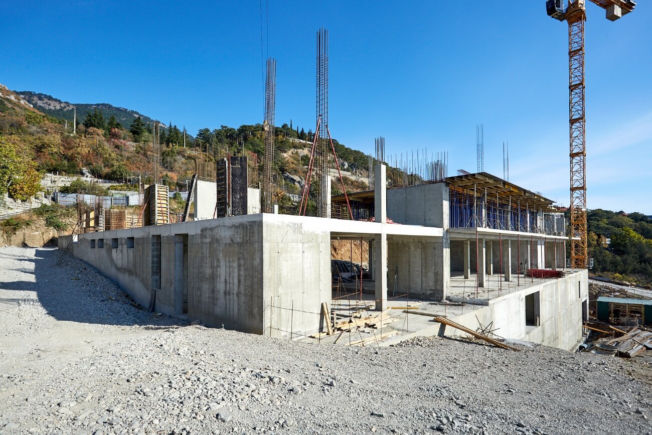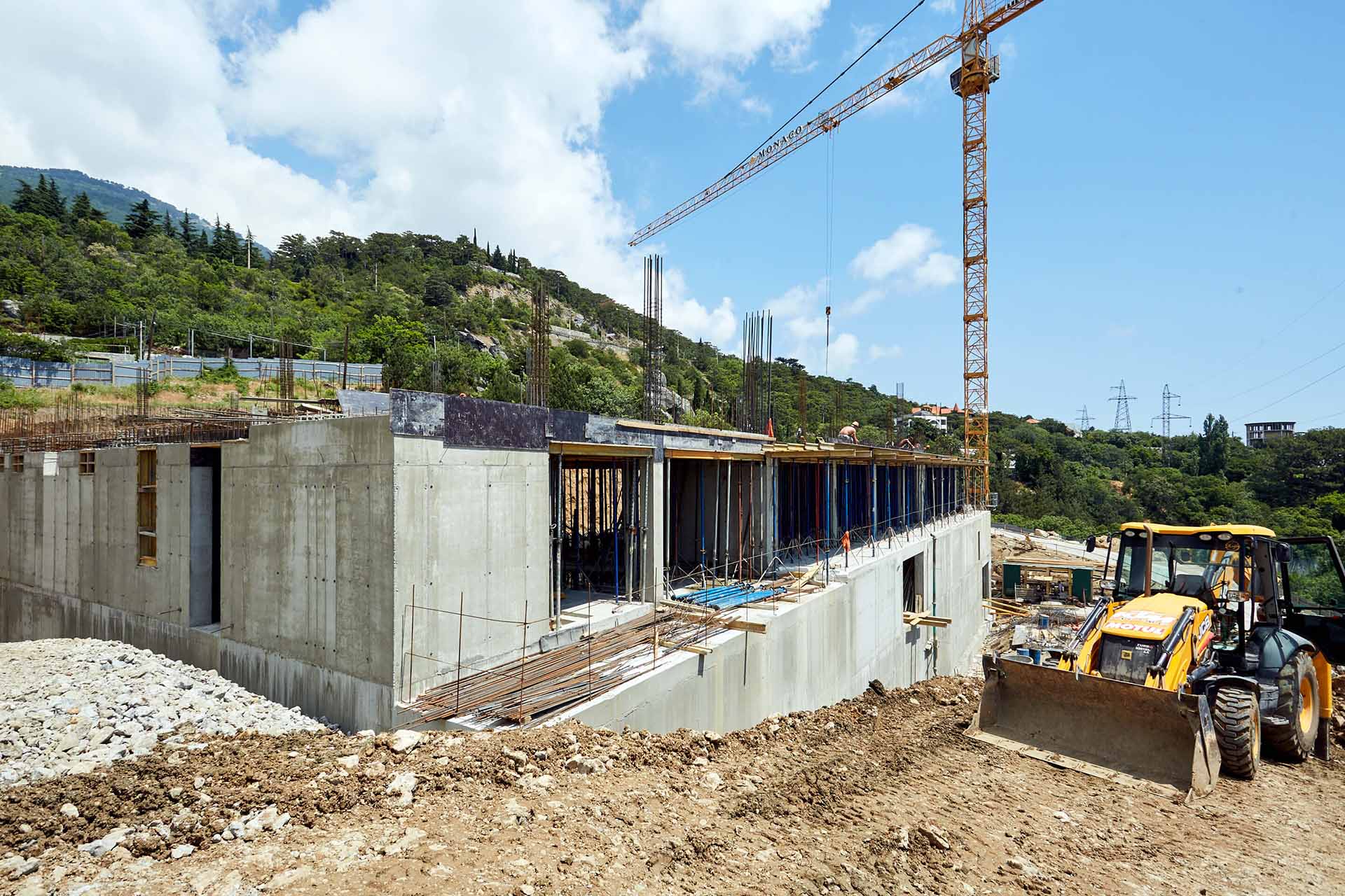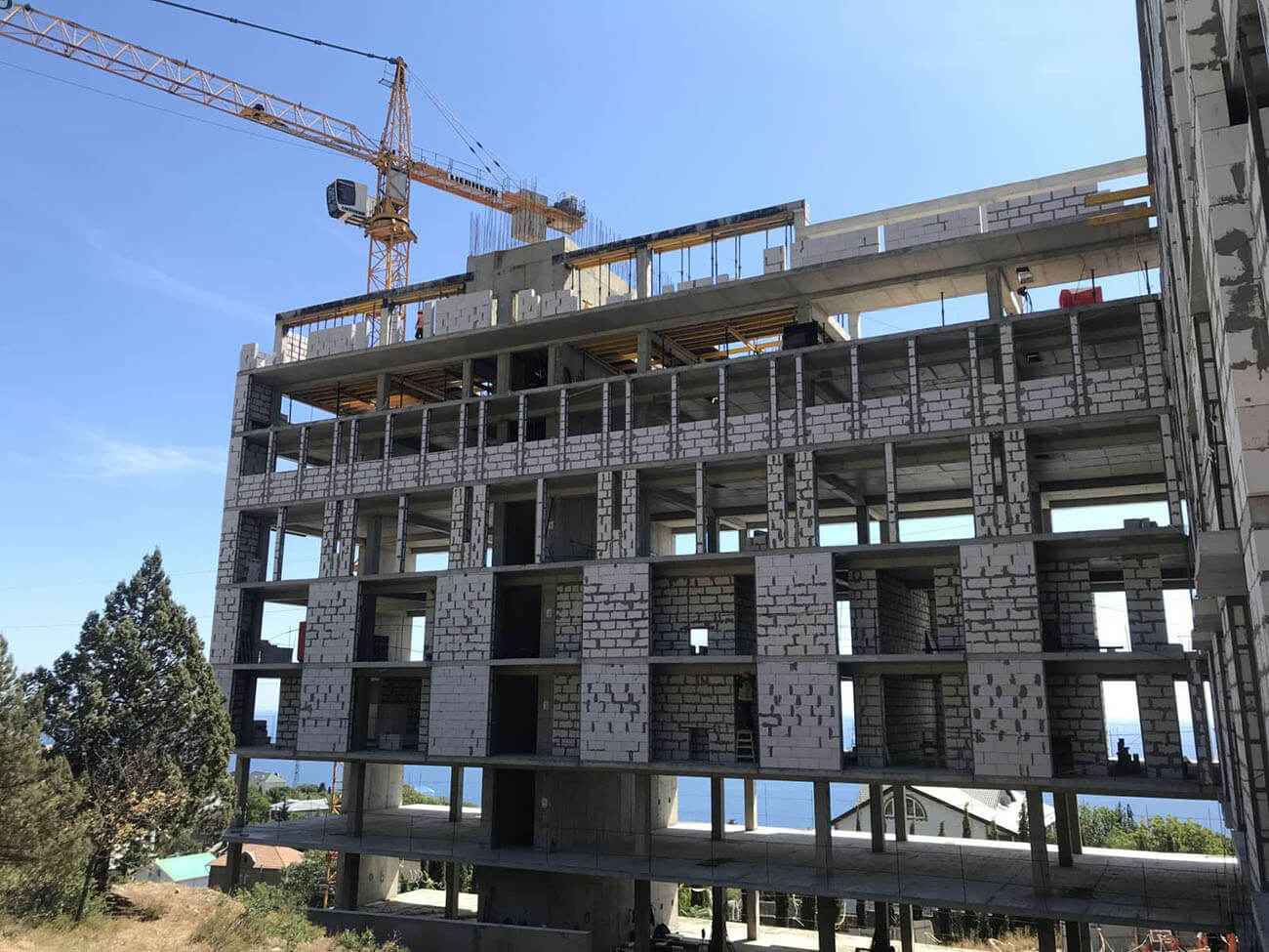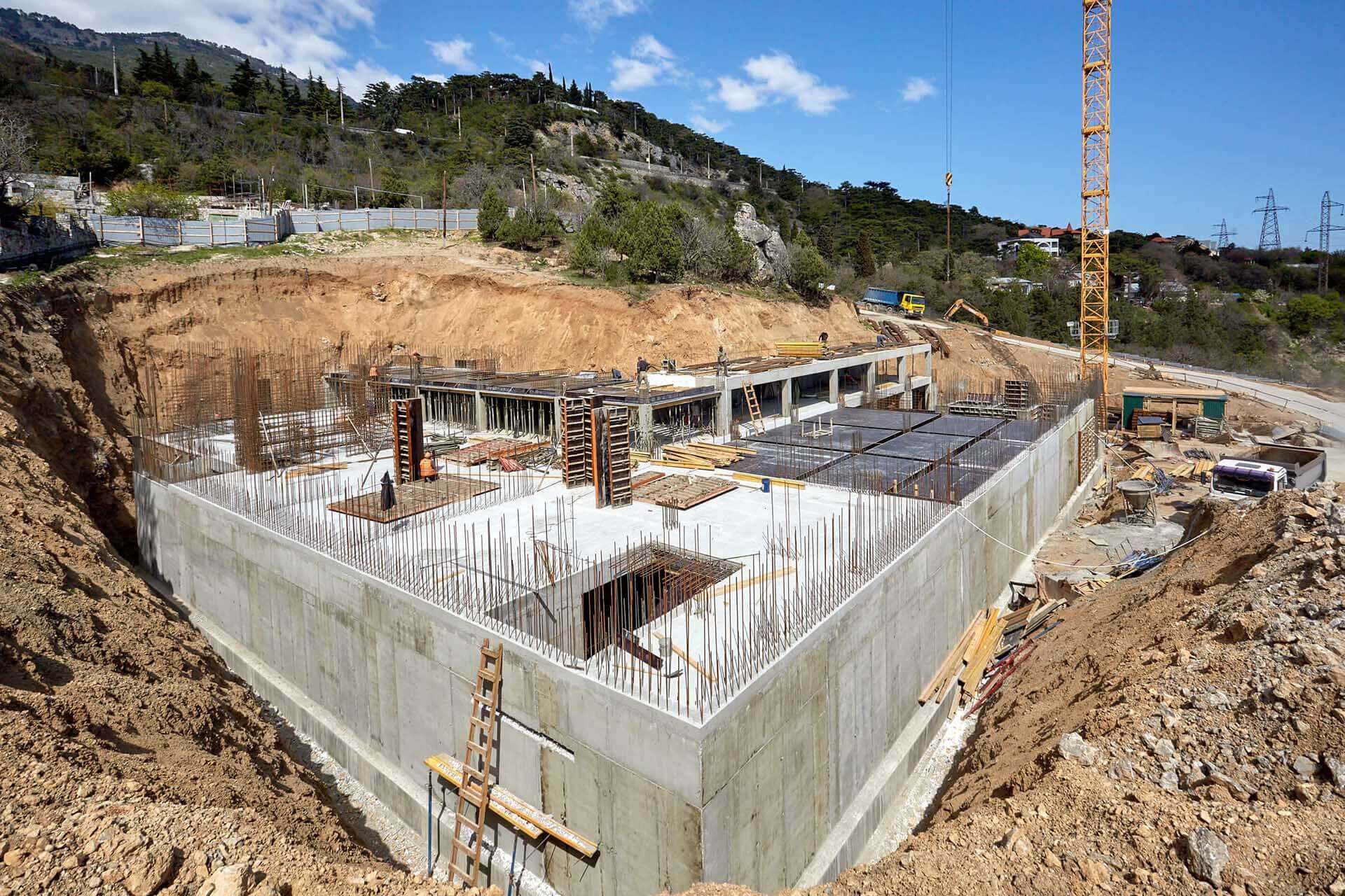 С октября запрет властей на производство строительных работ на Южном берегу Крыма во время курортного сезона сняли и на площадке жилого комплекса работа закипела с новой силой!