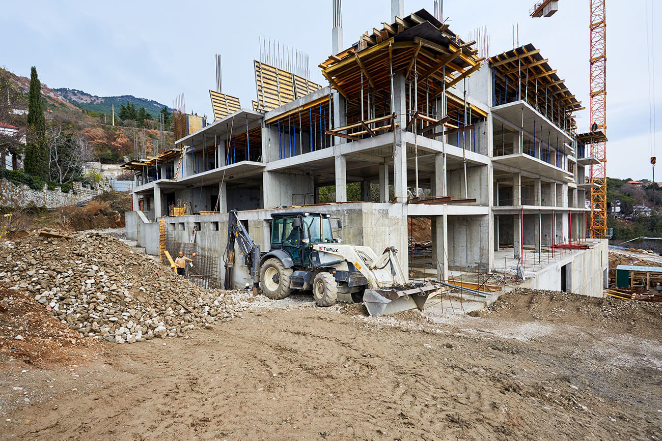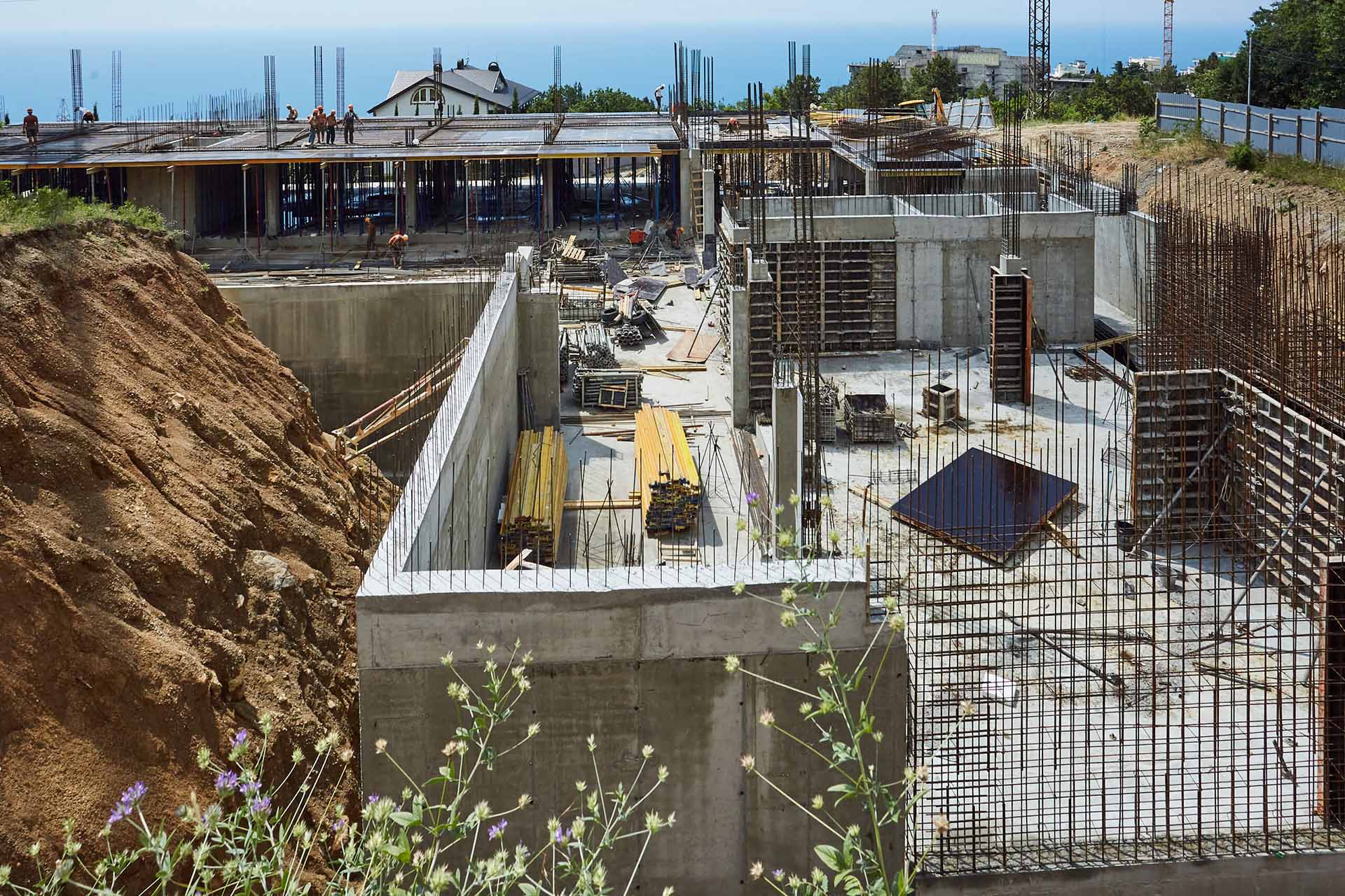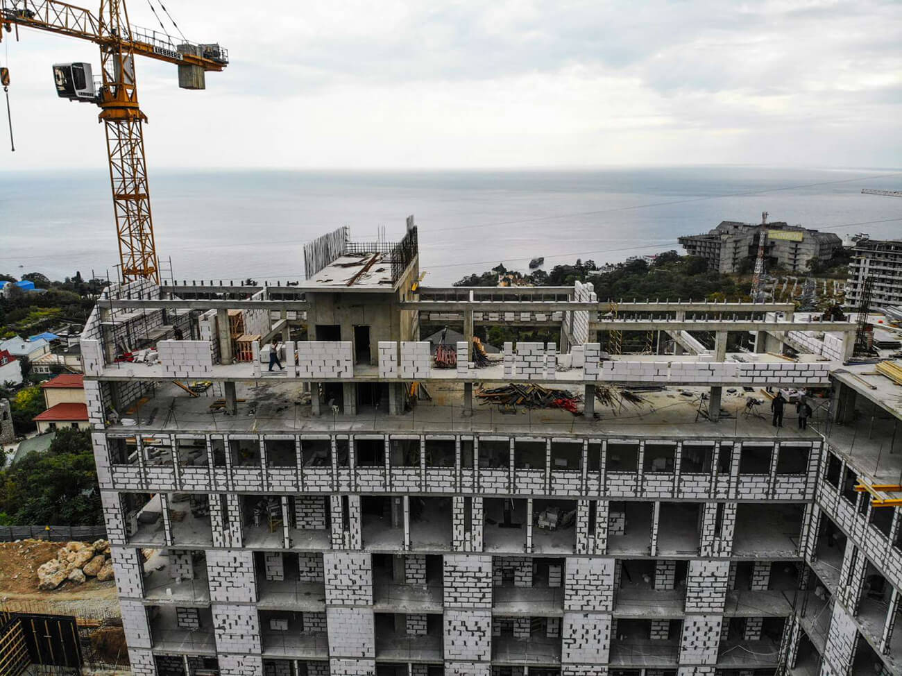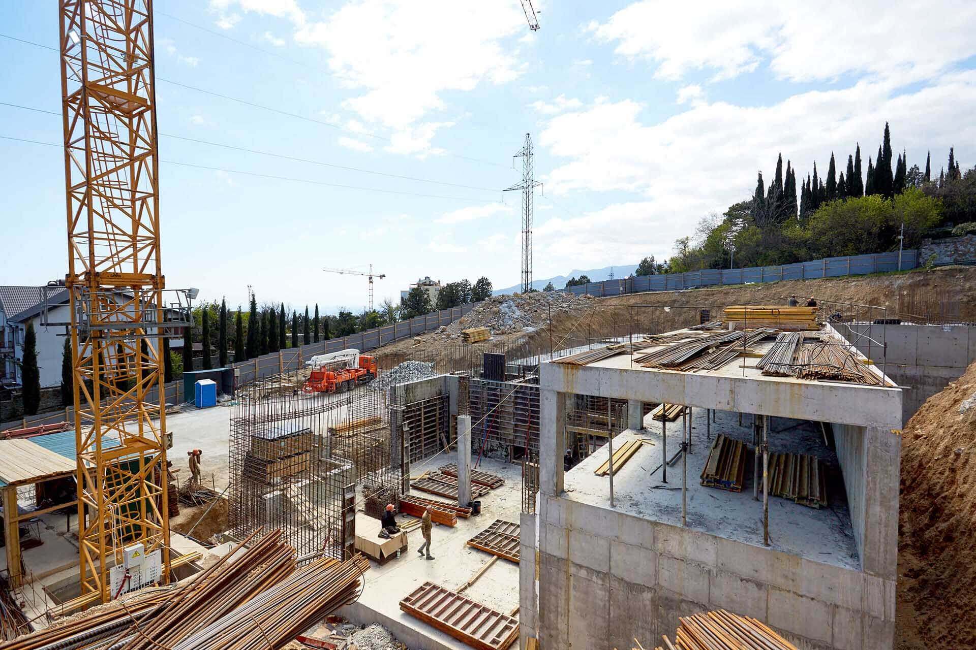 С октября запрет властей на производство строительных работ на Южном берегу Крыма во время курортного сезона сняли и на площадке жилого комплекса работа закипела с новой силой!