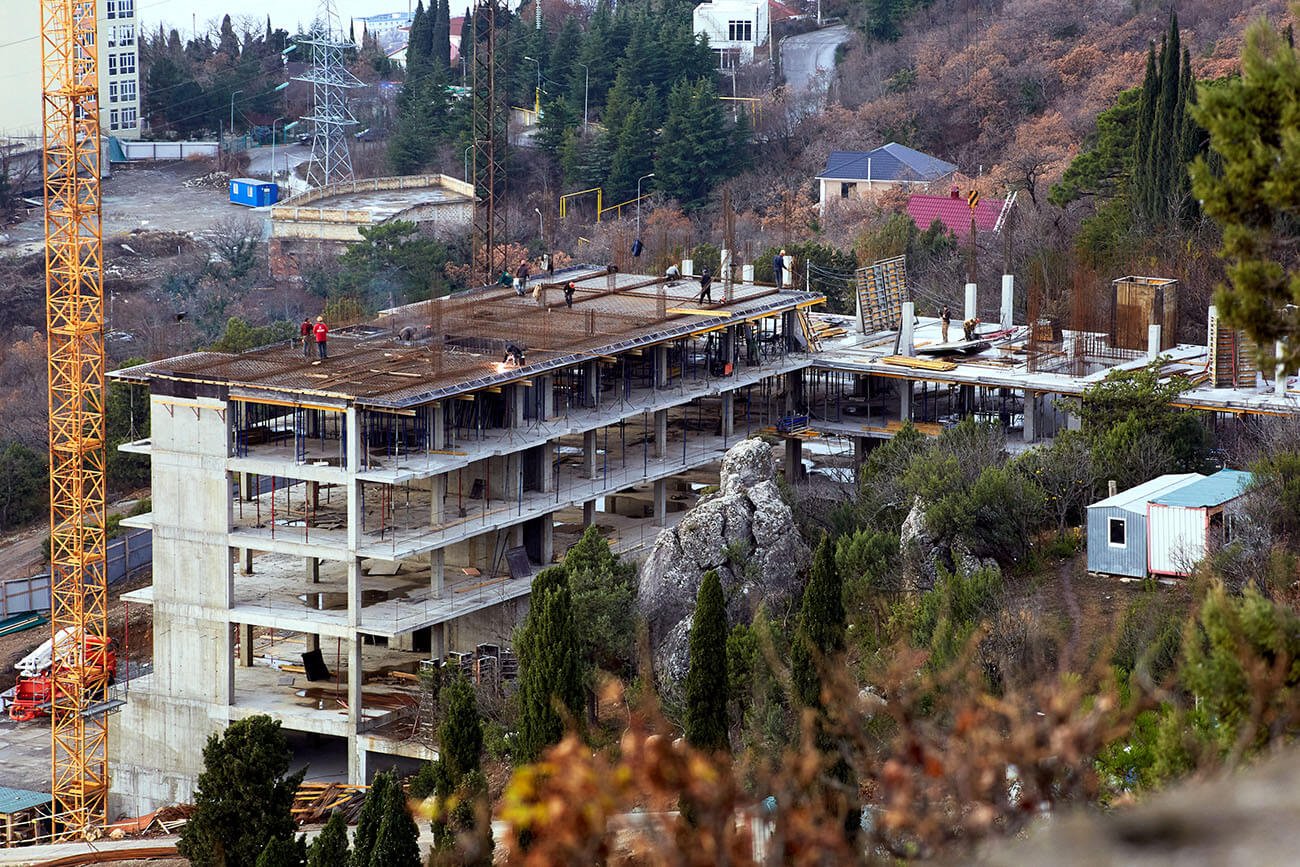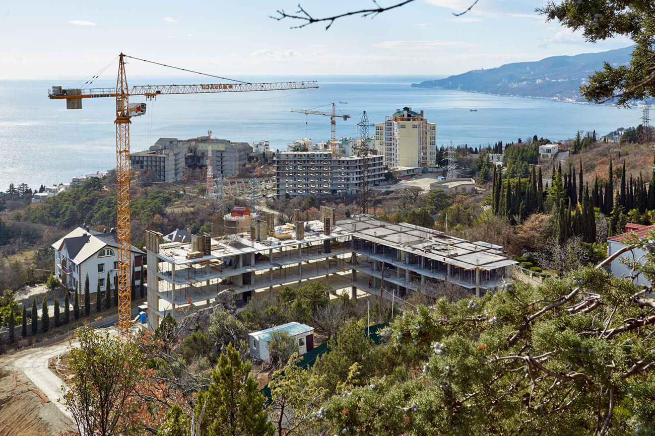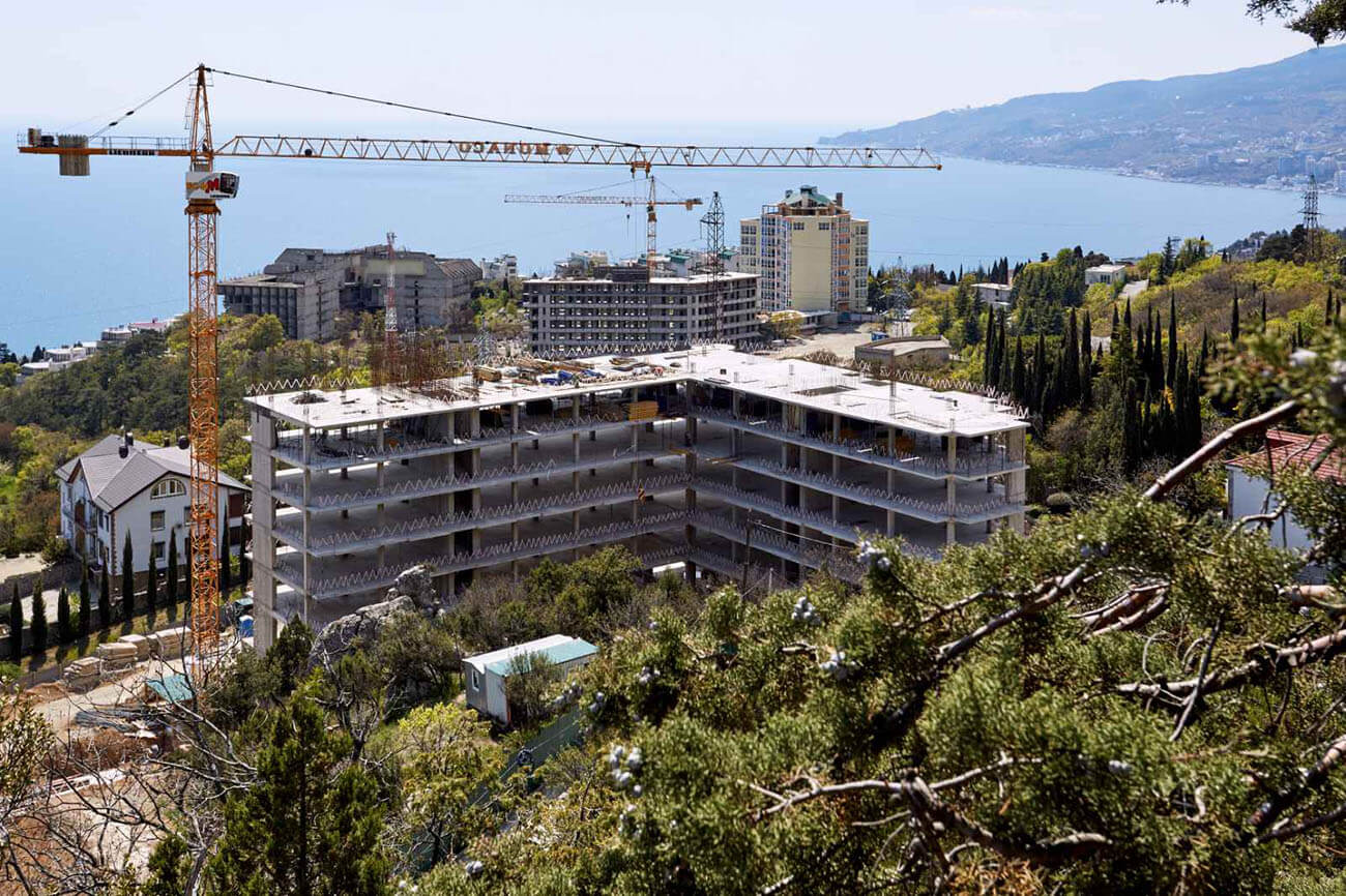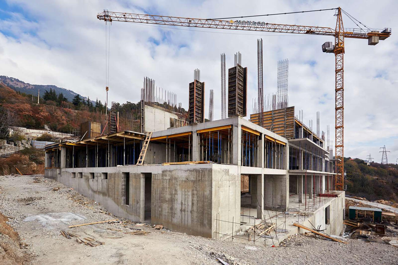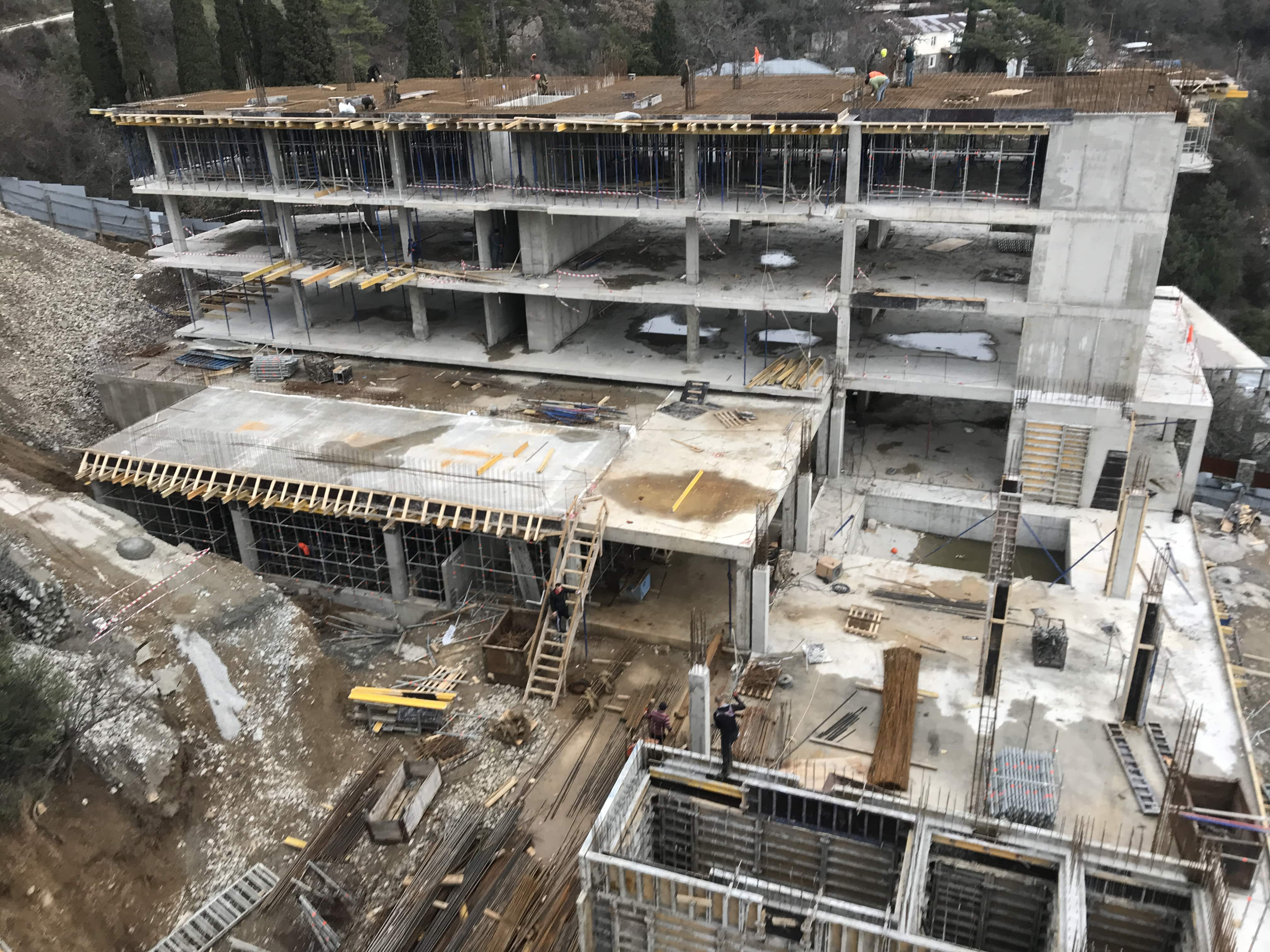 С октября запрет властей на производство строительных работ на Южном берегу Крыма во время курортного сезона сняли и на площадке жилого комплекса работа закипела с новой силой!
