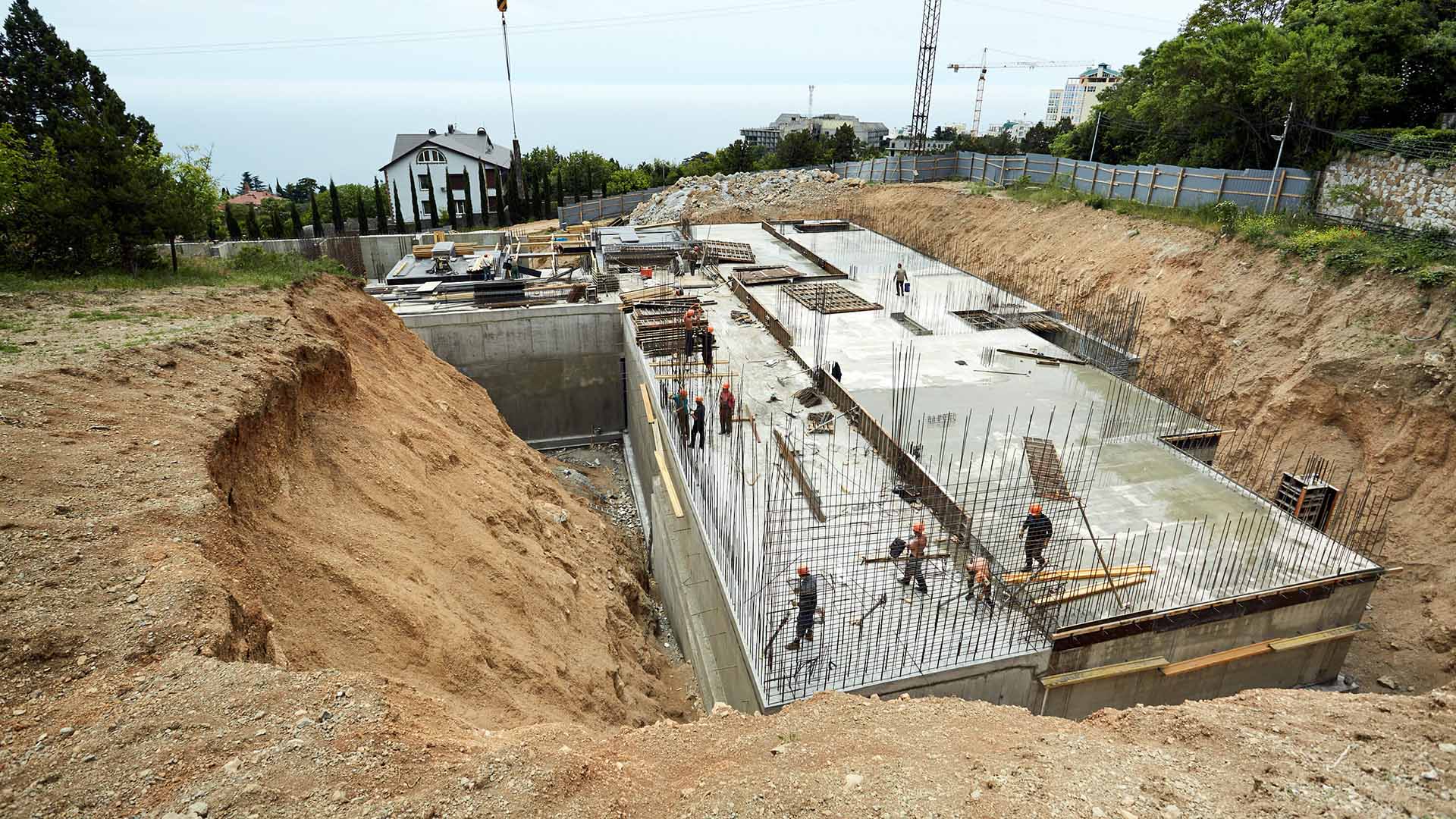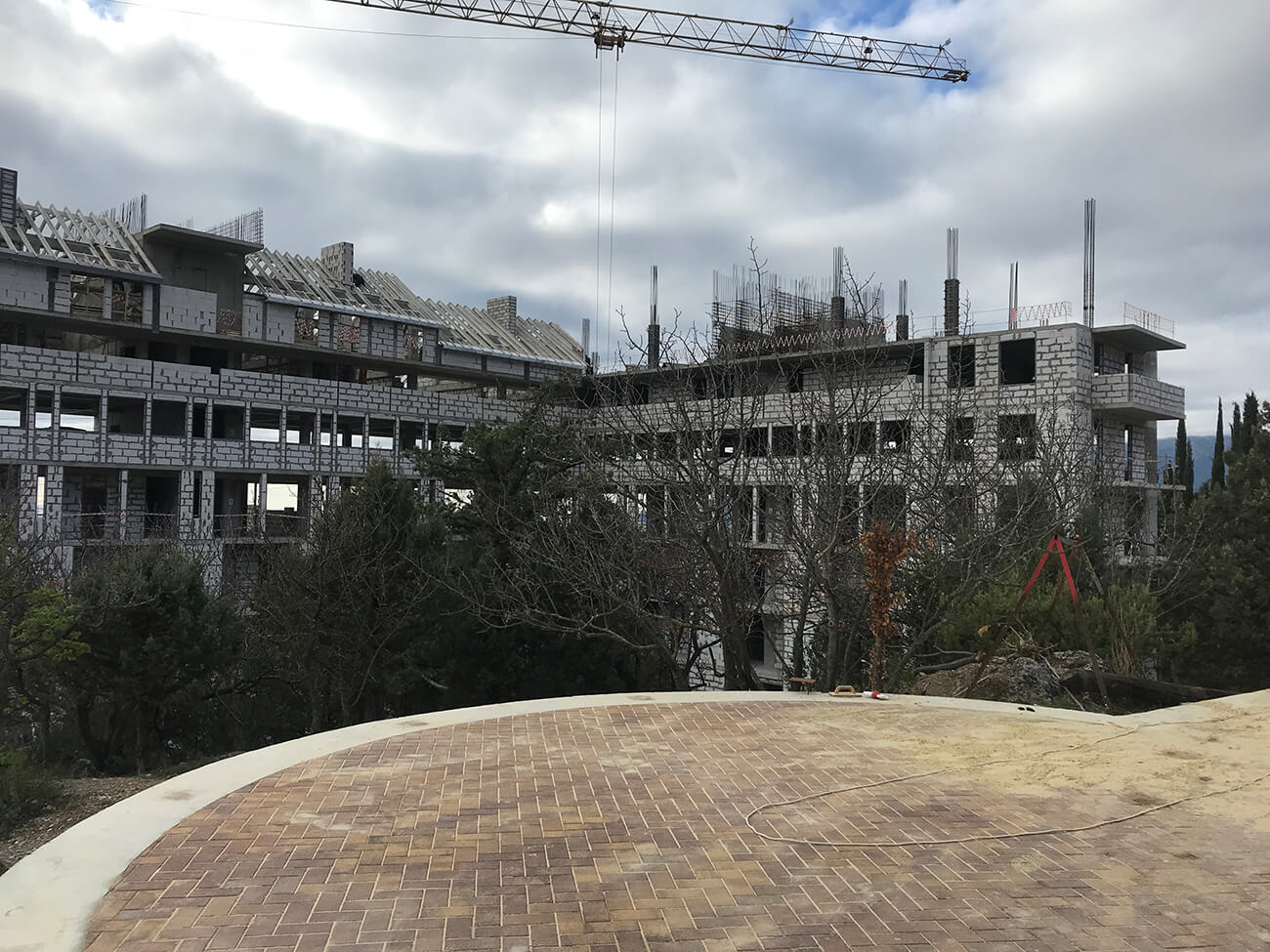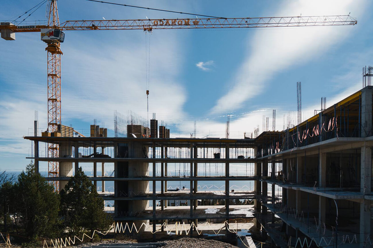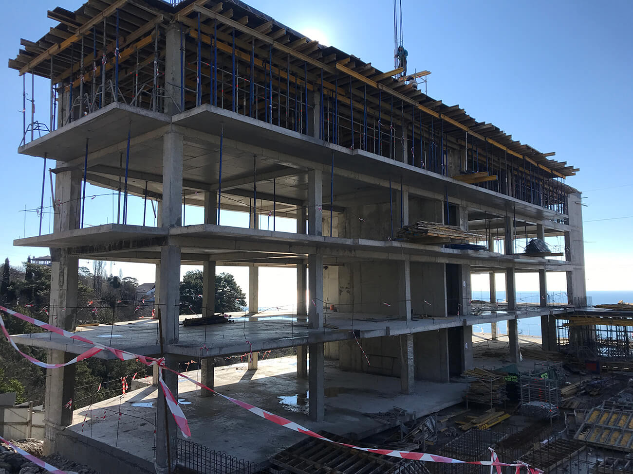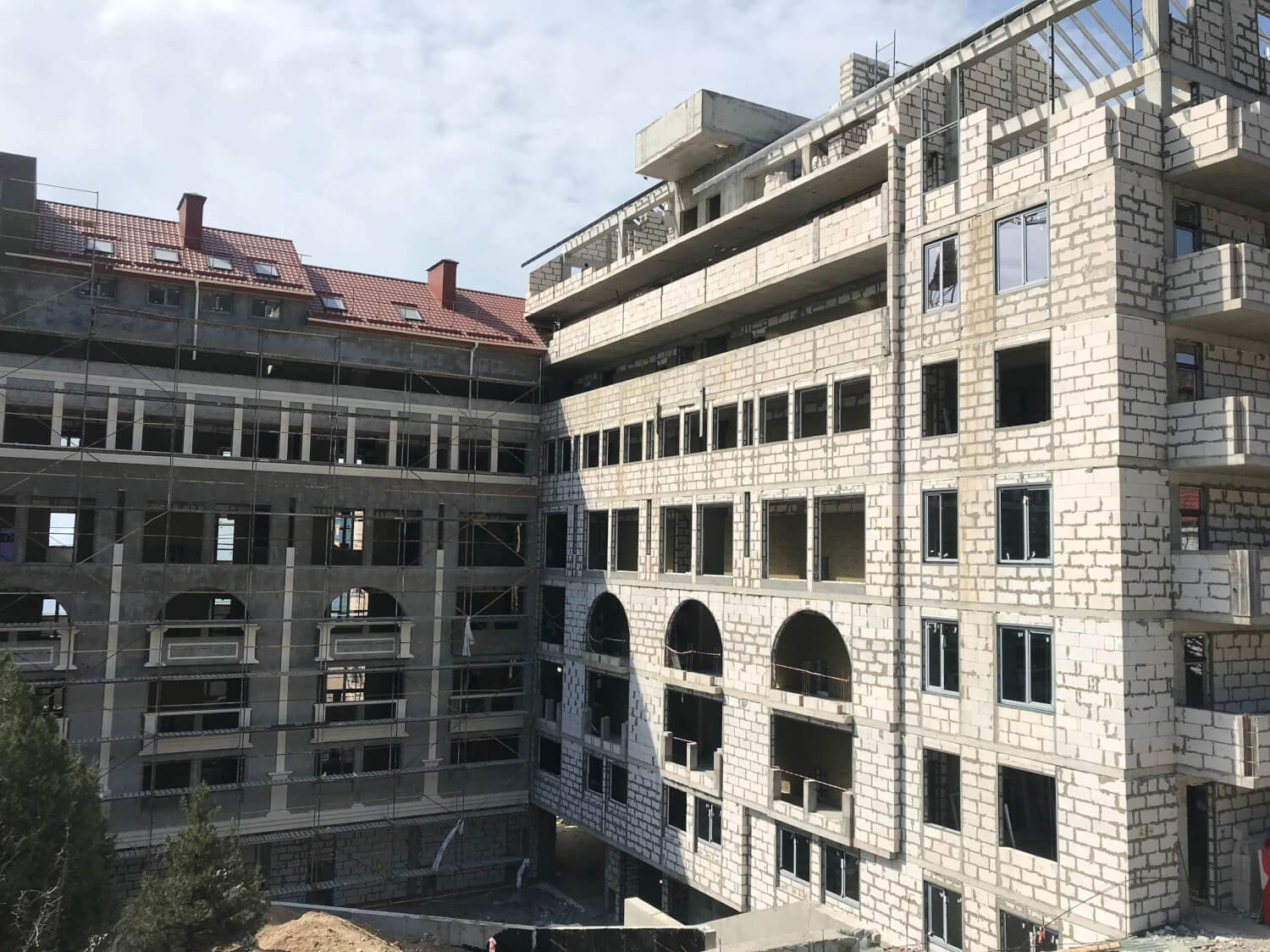 С октября запрет властей на производство строительных работ на Южном берегу Крыма во время курортного сезона сняли и на площадке жилого комплекса работа закипела с новой силой!
