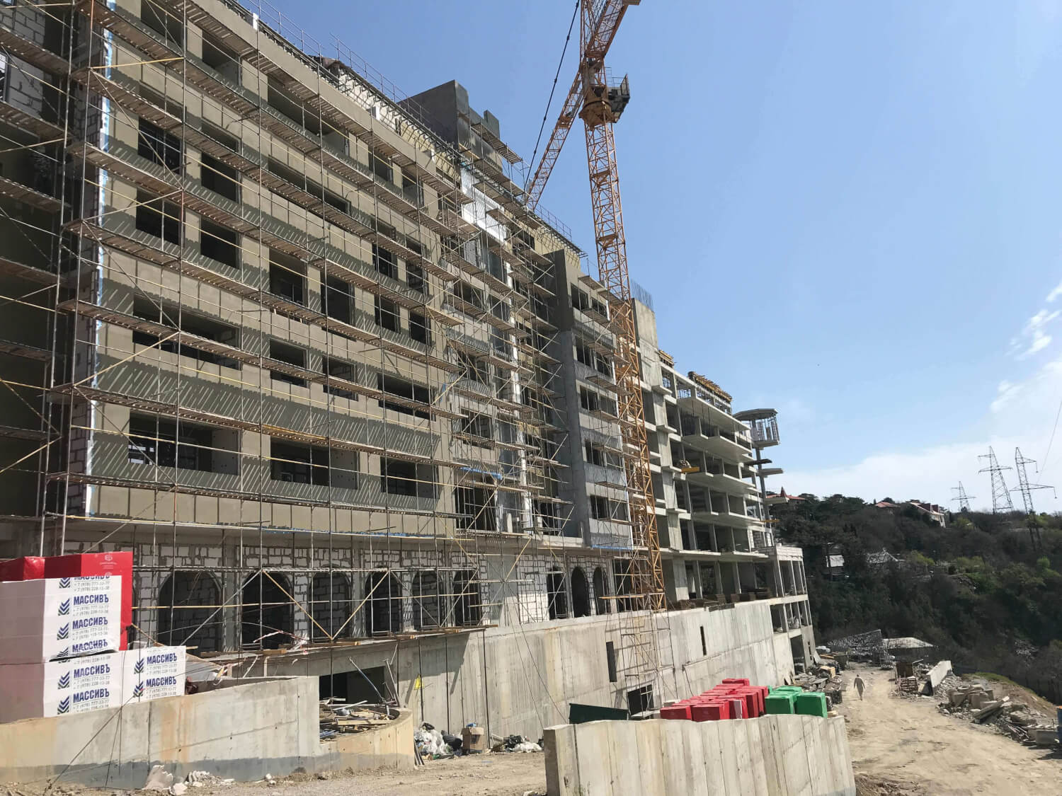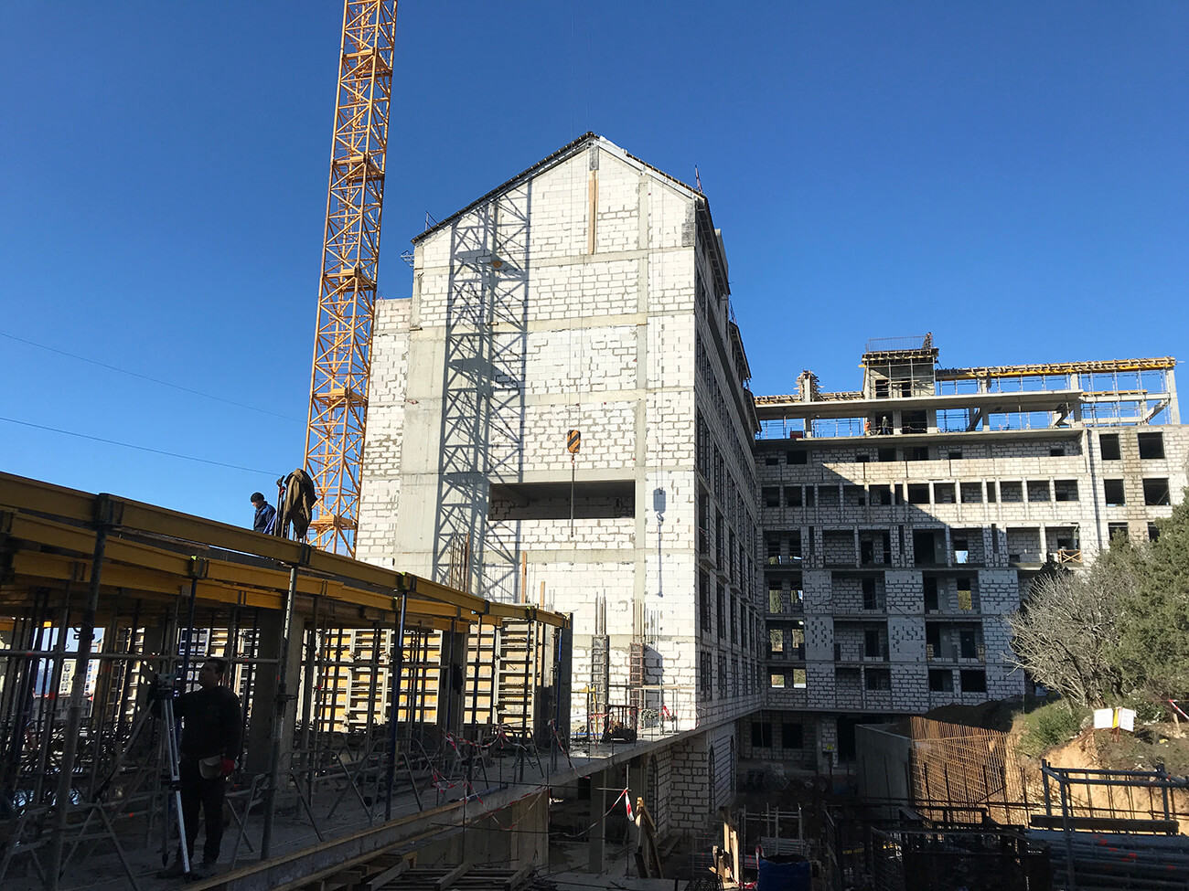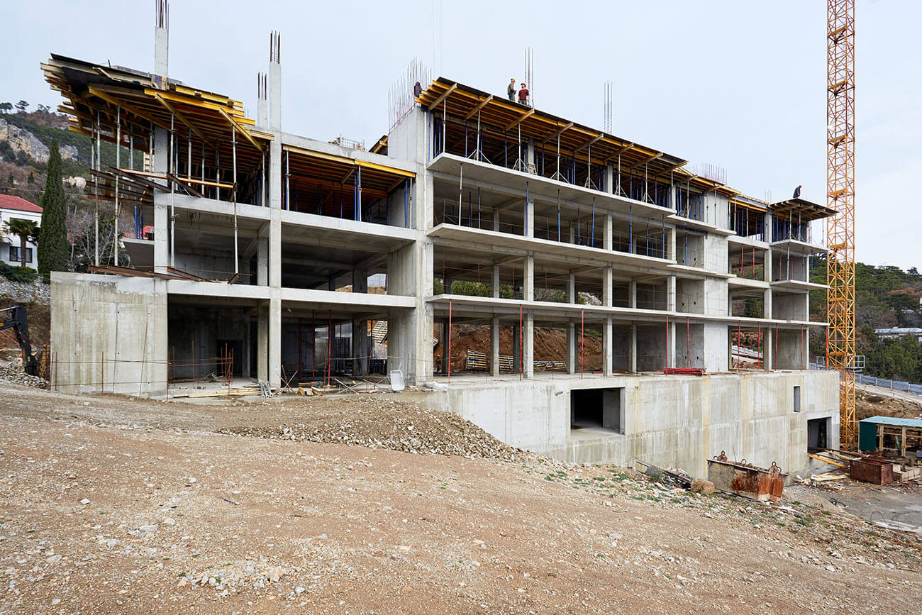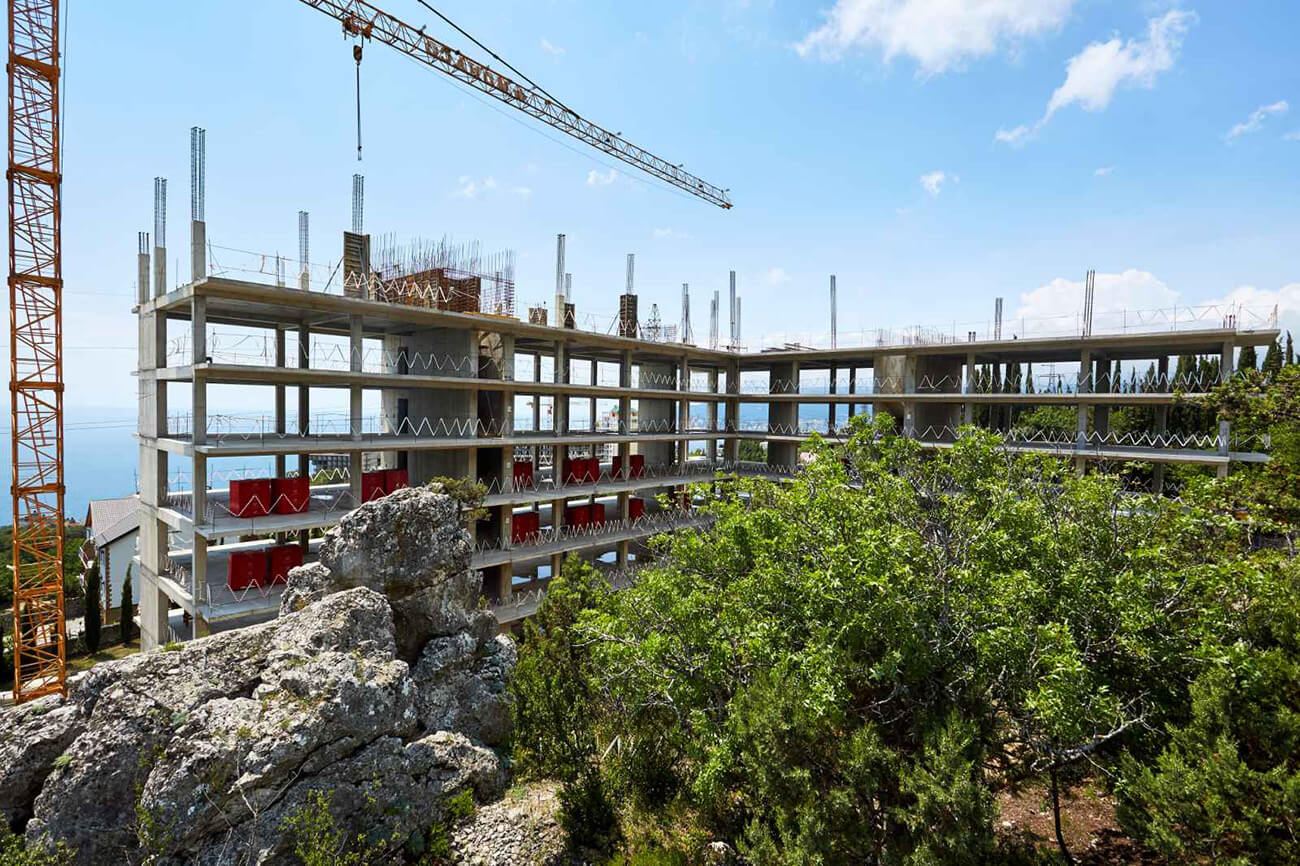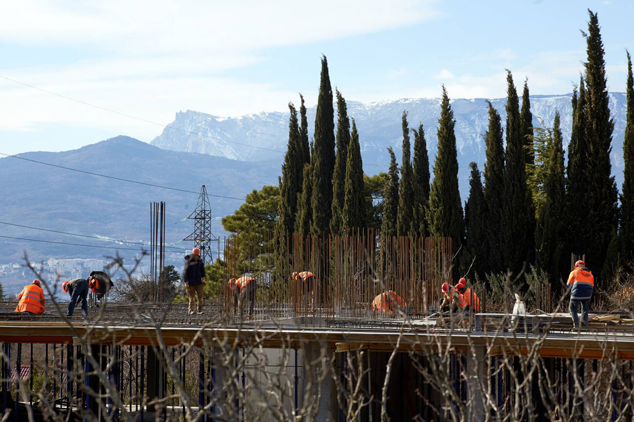 С октября запрет властей на производство строительных работ на Южном берегу Крыма во время курортного сезона сняли и на площадке жилого комплекса работа закипела с новой силой!