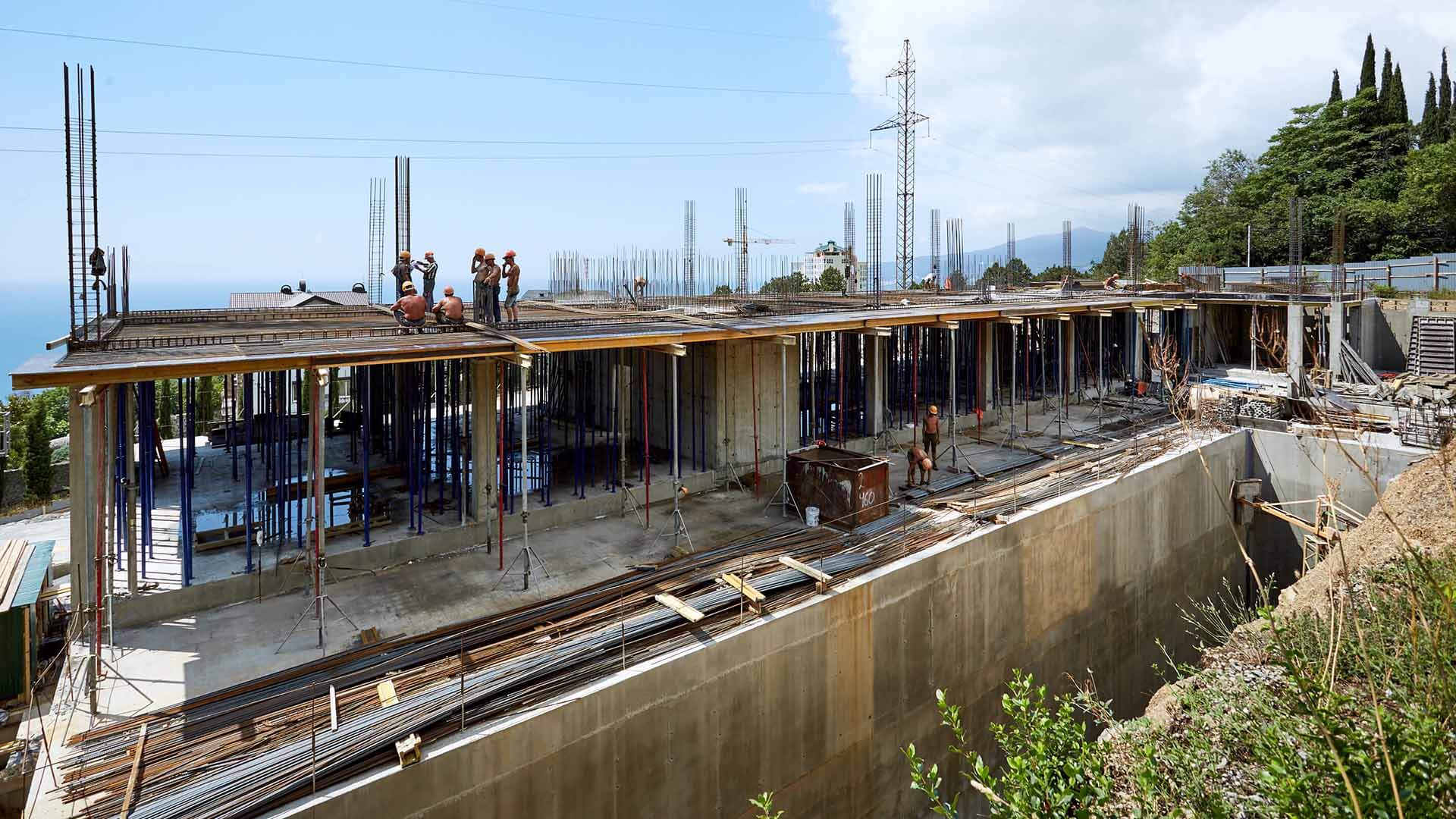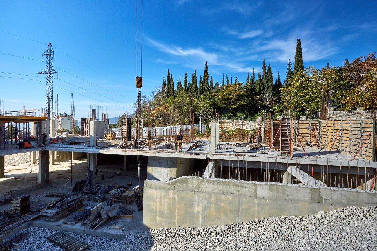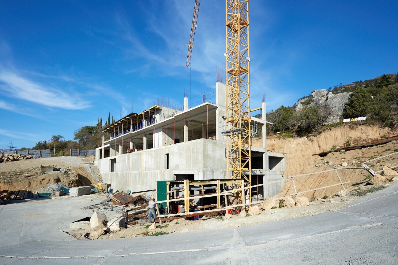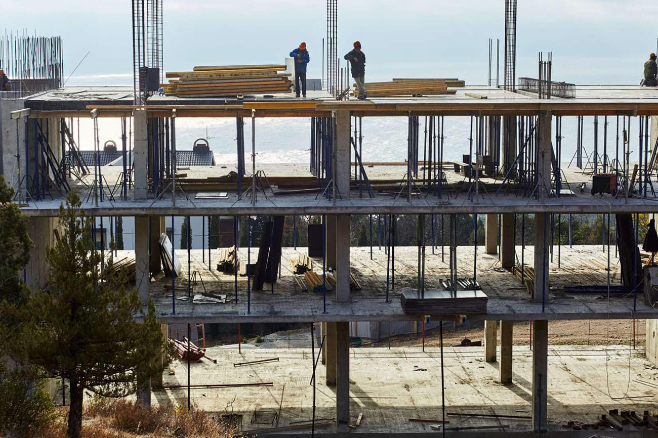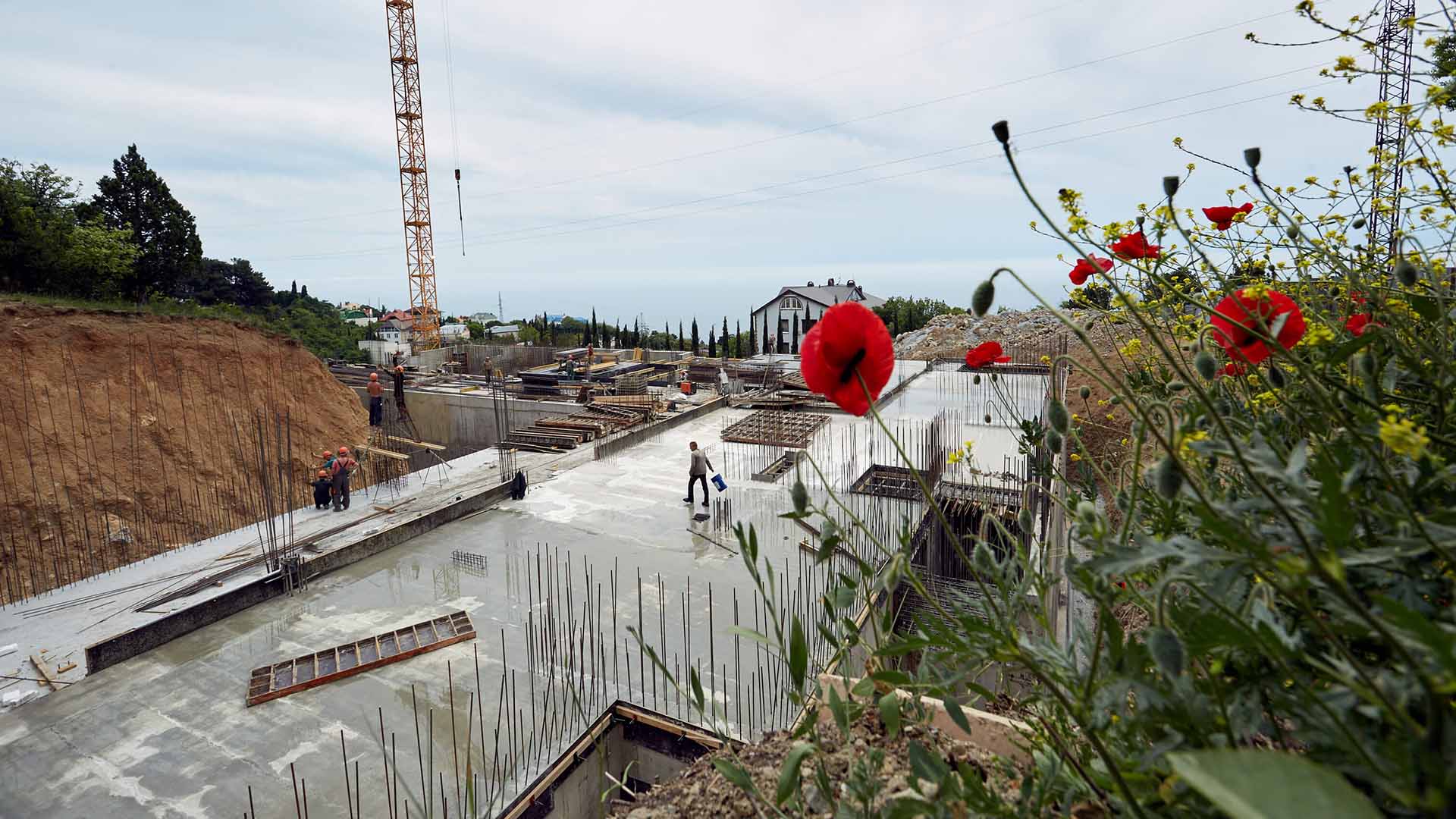С октября запрет властей на производство строительных работ на Южном берегу Крыма во время курортного сезона сняли и на площадке жилого комплекса работа закипела с новой силой!