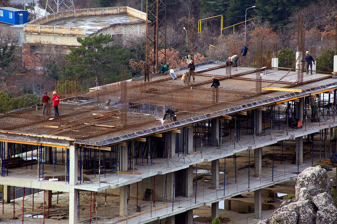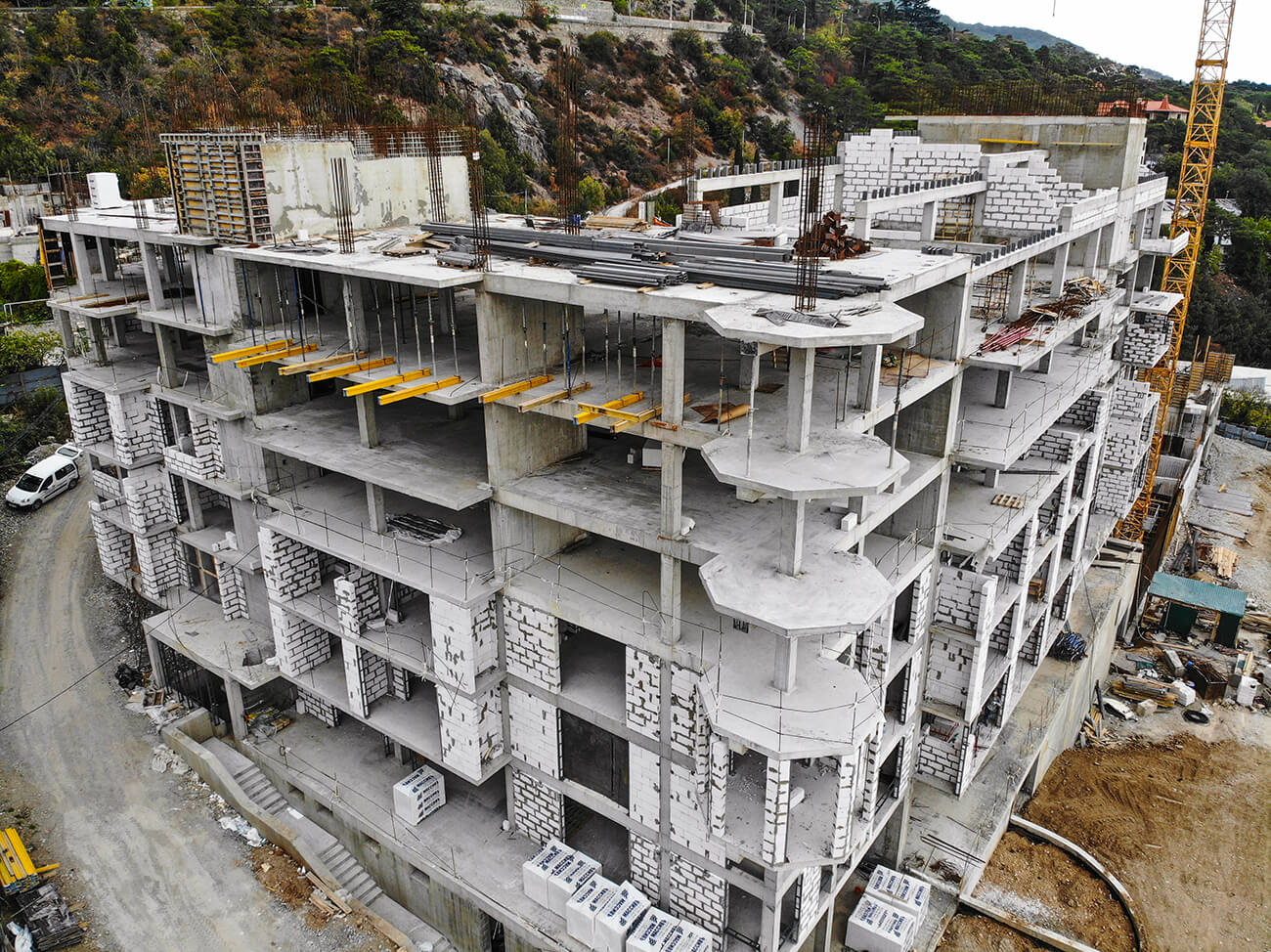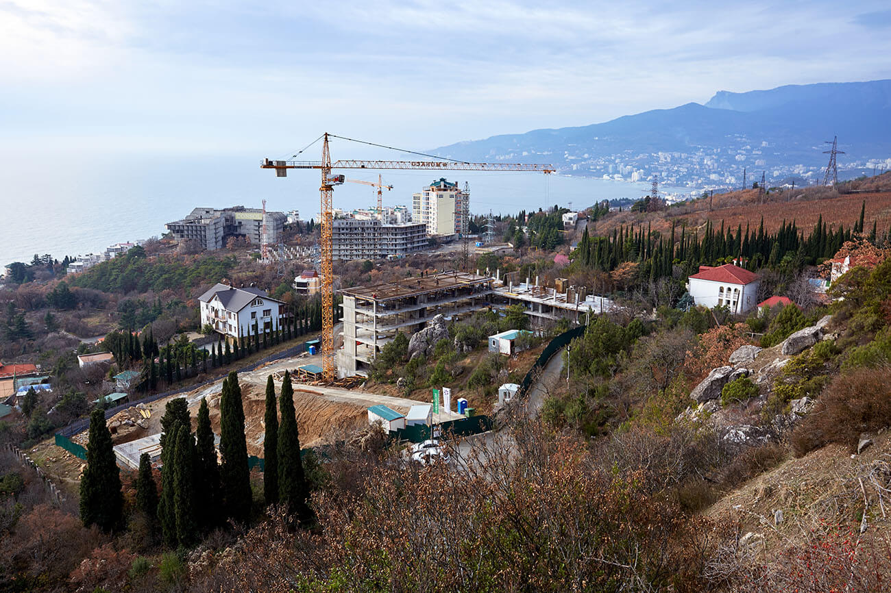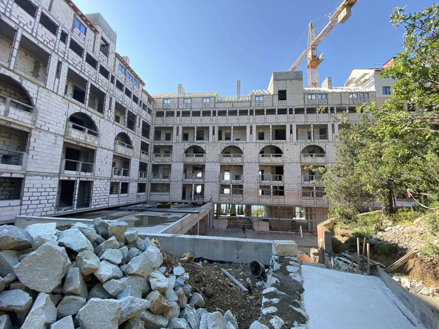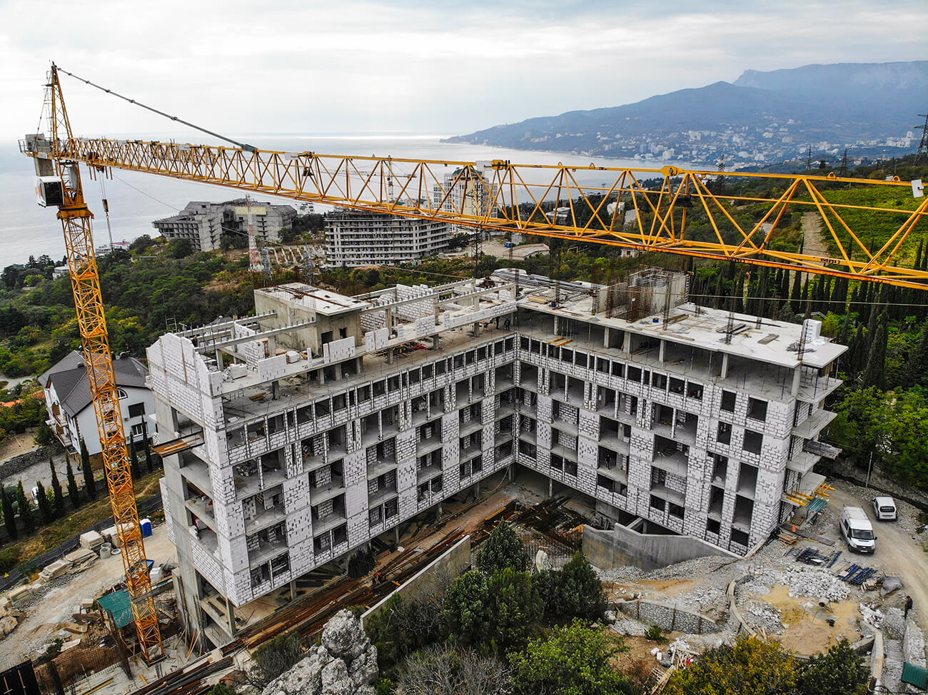 С октября запрет властей на производство строительных работ на Южном берегу Крыма во время курортного сезона сняли и на площадке жилого комплекса работа закипела с новой силой!