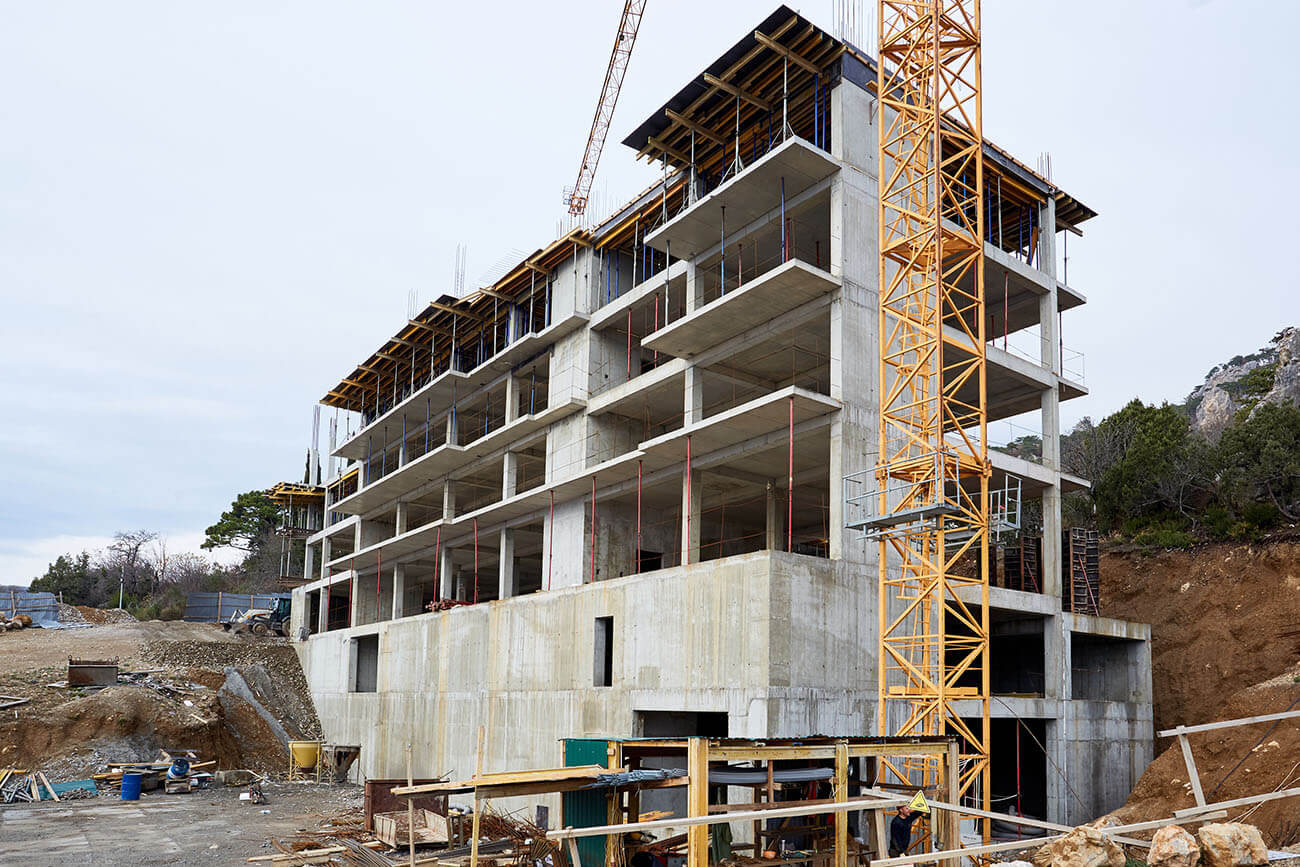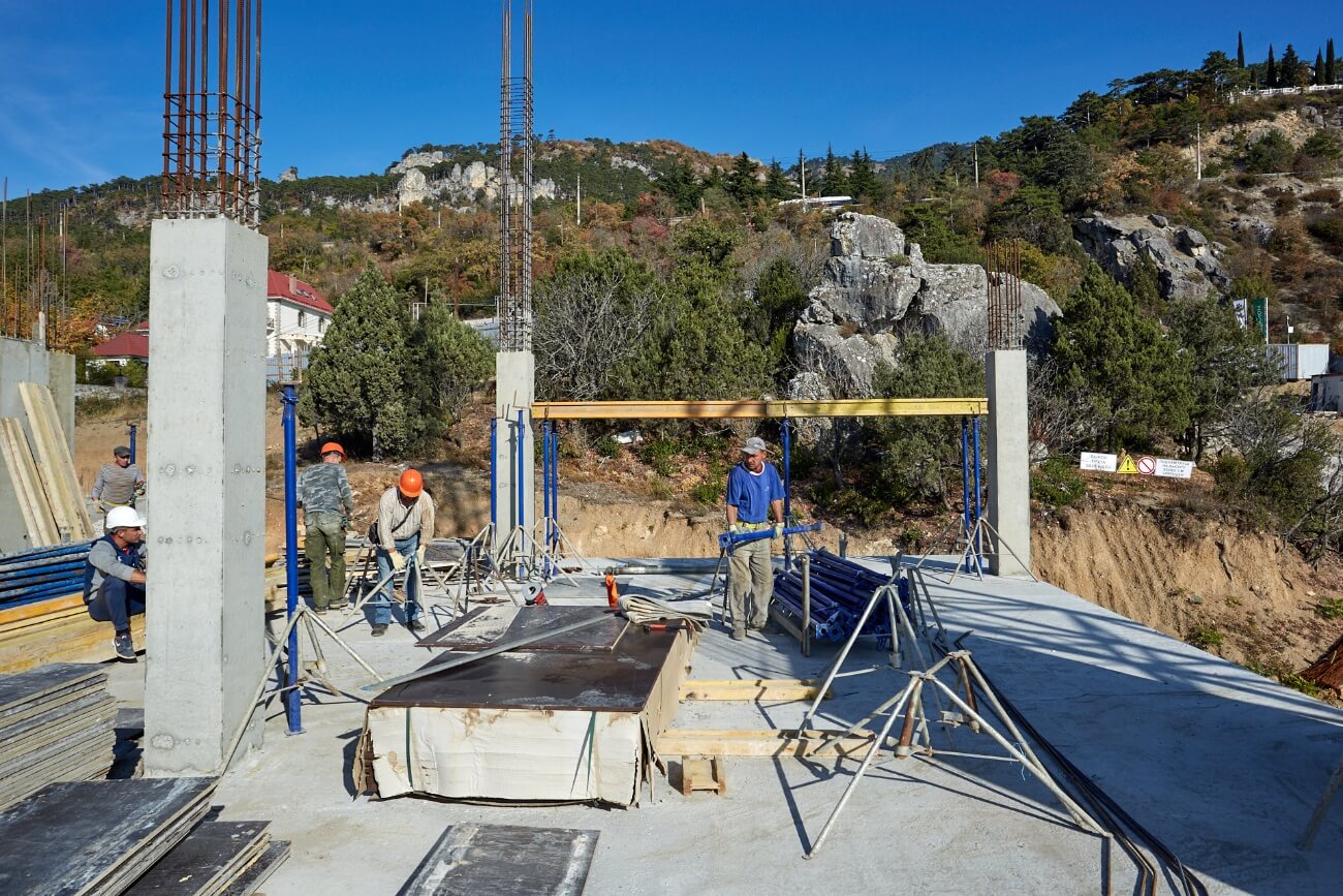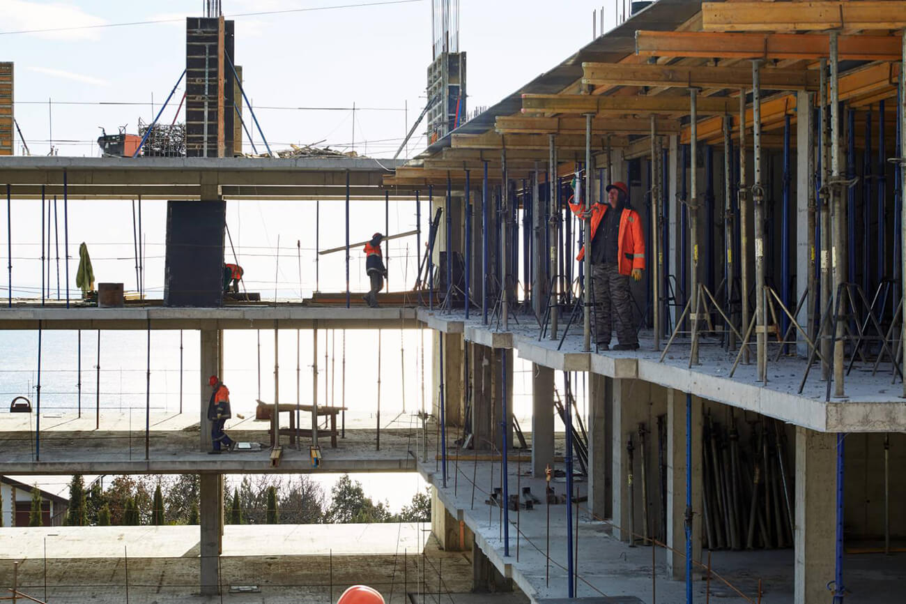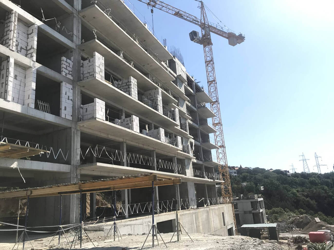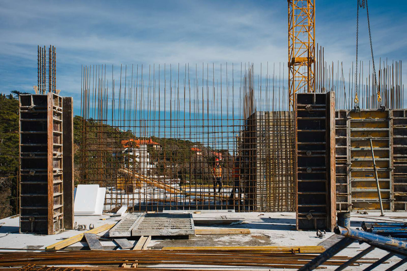 С октября запрет властей на производство строительных работ на Южном берегу Крыма во время курортного сезона сняли и на площадке жилого комплекса работа закипела с новой силой!