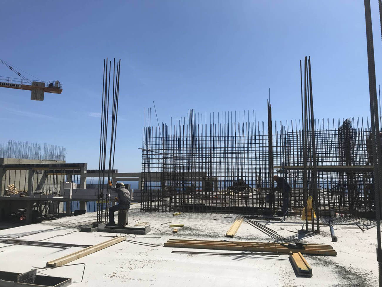 завершено бетонирование перекрытия 4 этажа, армируются стены и колонны 5 этажа