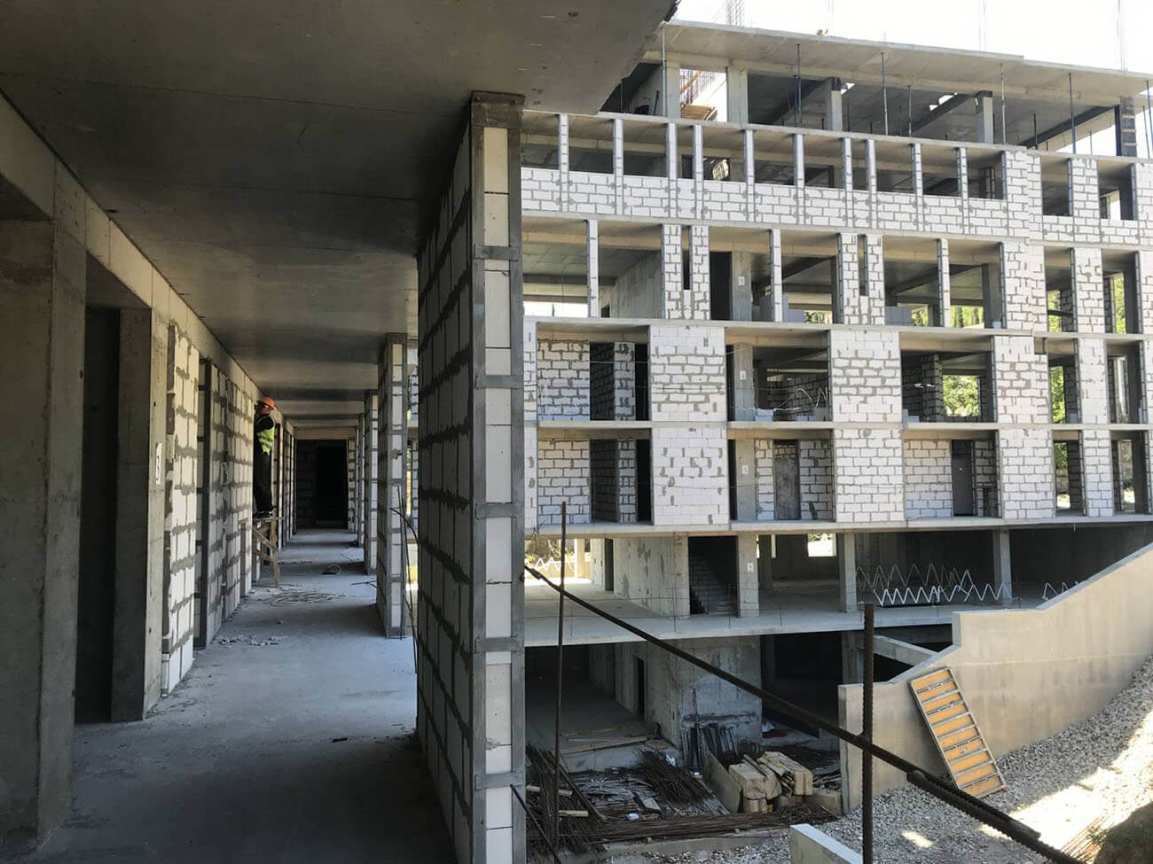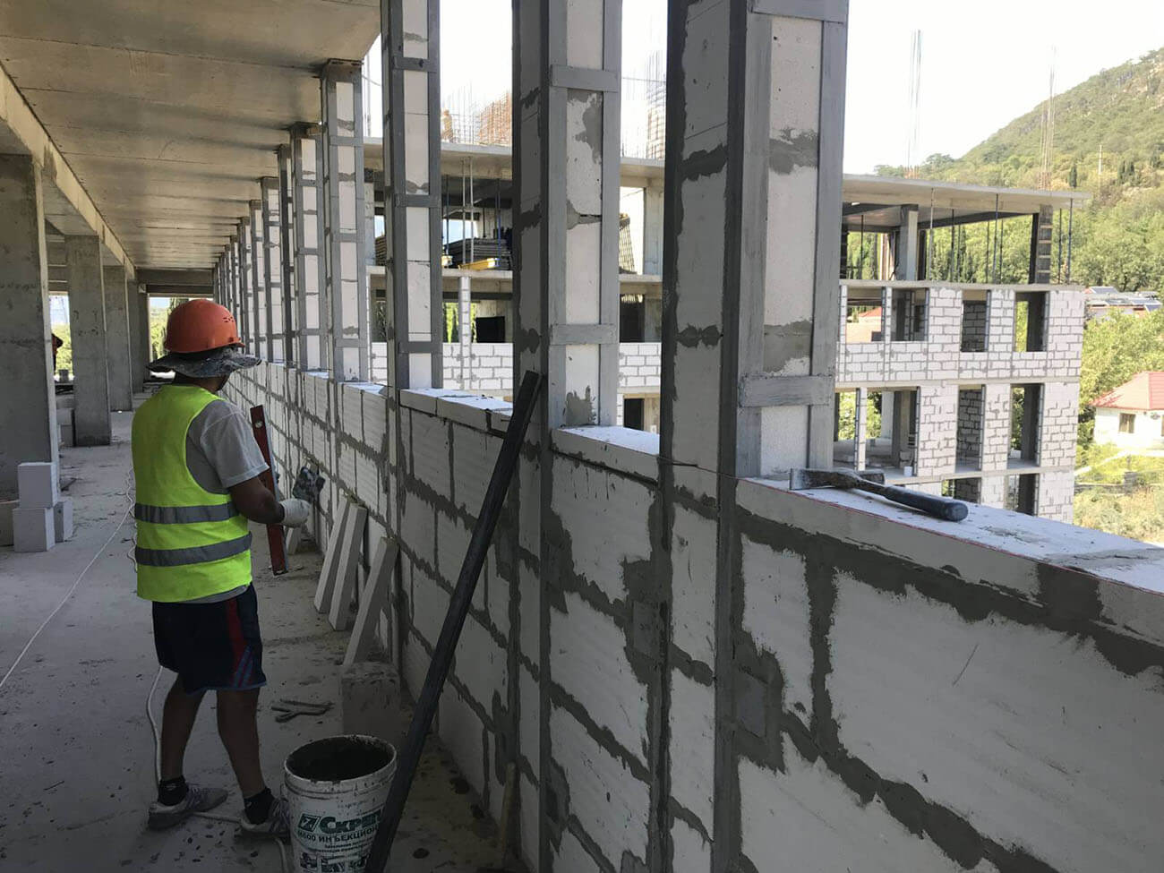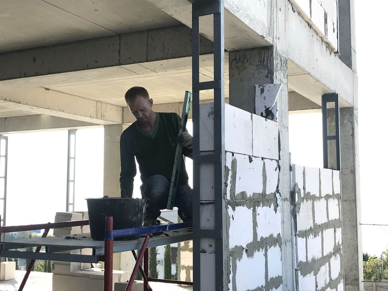 - кладка стен и монтаж сетей внутреннего водопровода и канализации в Блоках 1 и 2;
