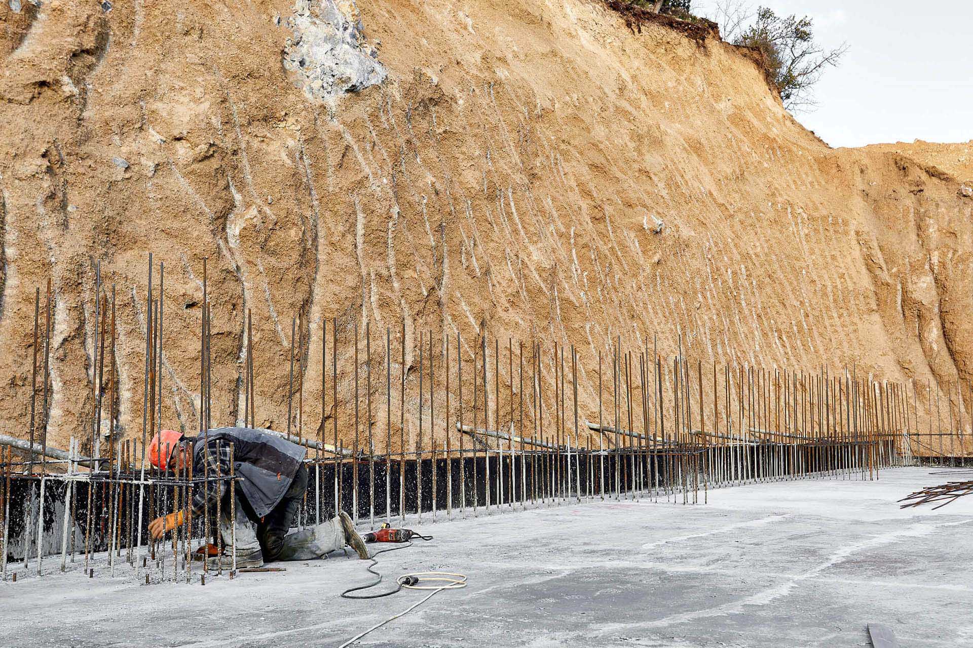 - Устройство стен подпорных монолитных вдоль Блока 4;