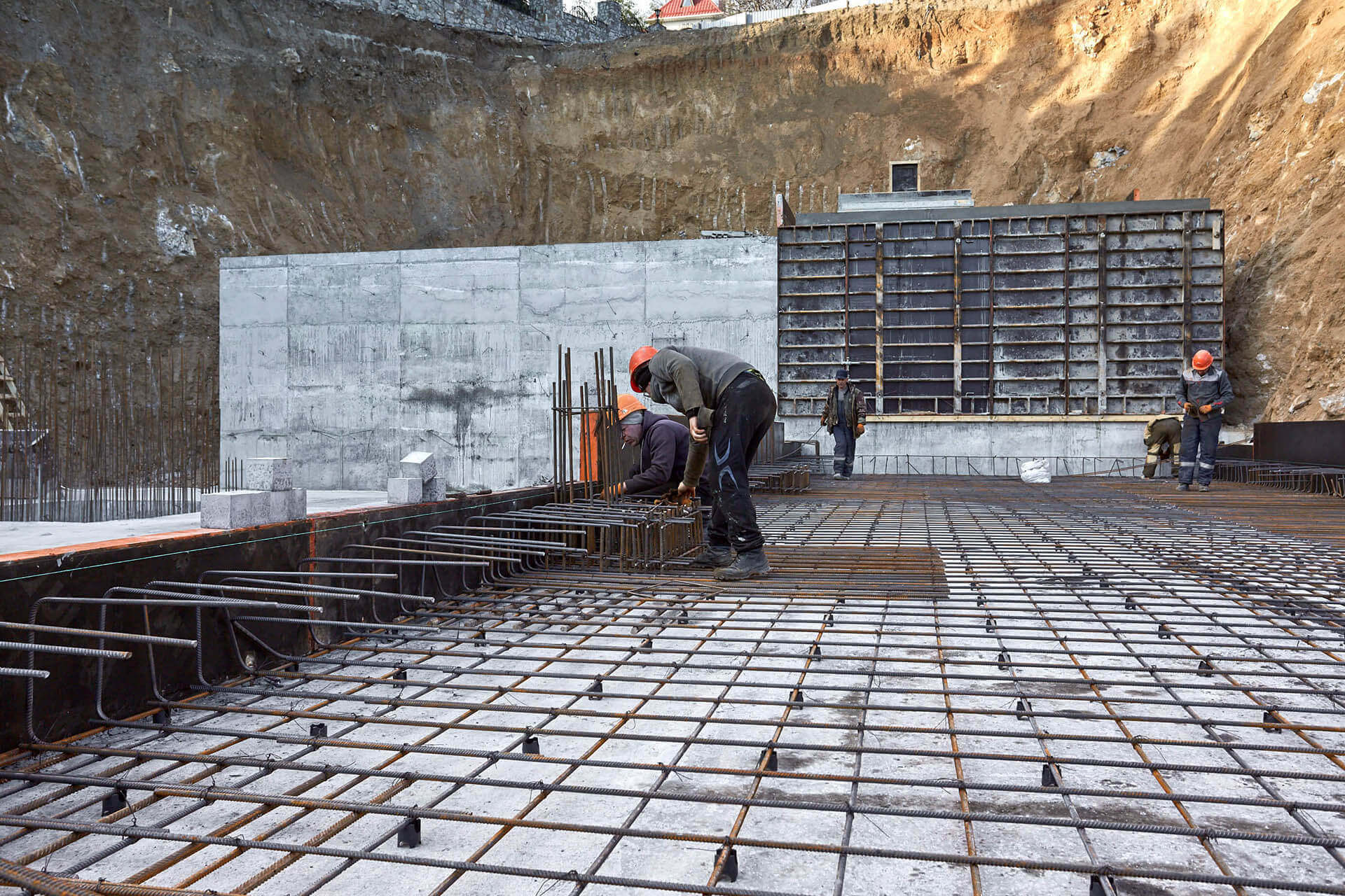 Завершены работы по разработке котлована. Выполнены: щебеночное основание и бетонная подготовка под фундамент. Ведутся работы по армированию фундаментной плиты.