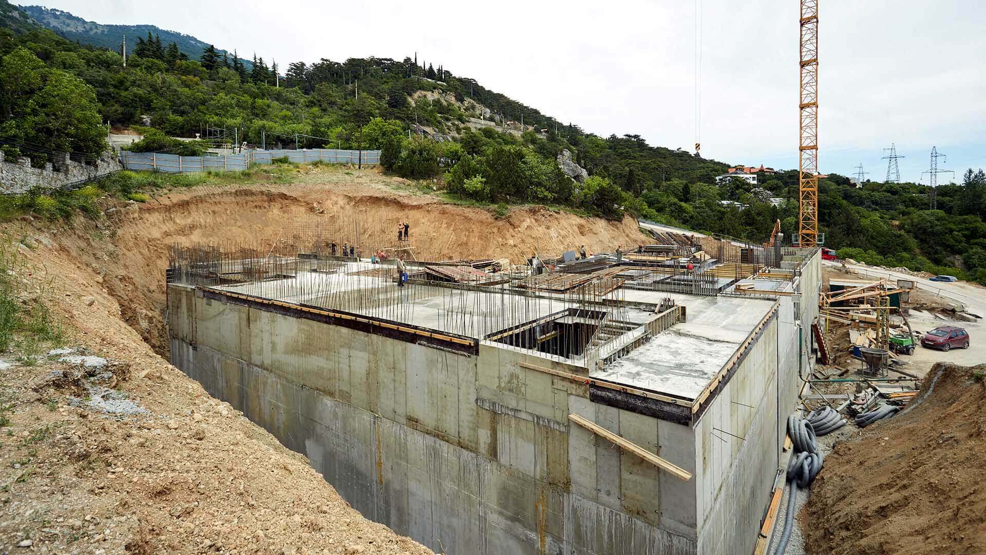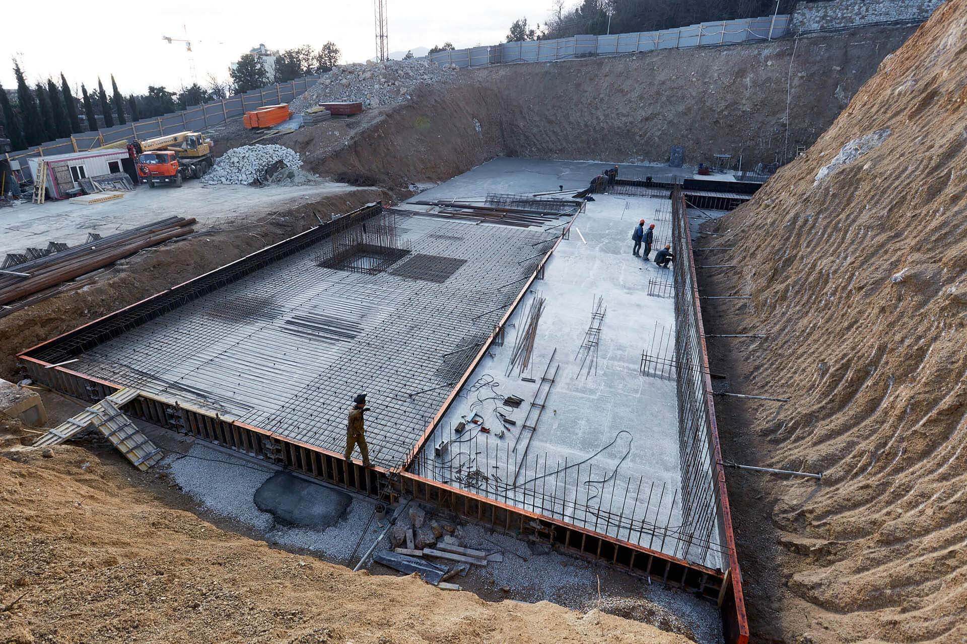 Завершены работы по разработке котлована. Выполнены работы по щебеночной и бетонной подготовке, забетонирована фундаментная плита.