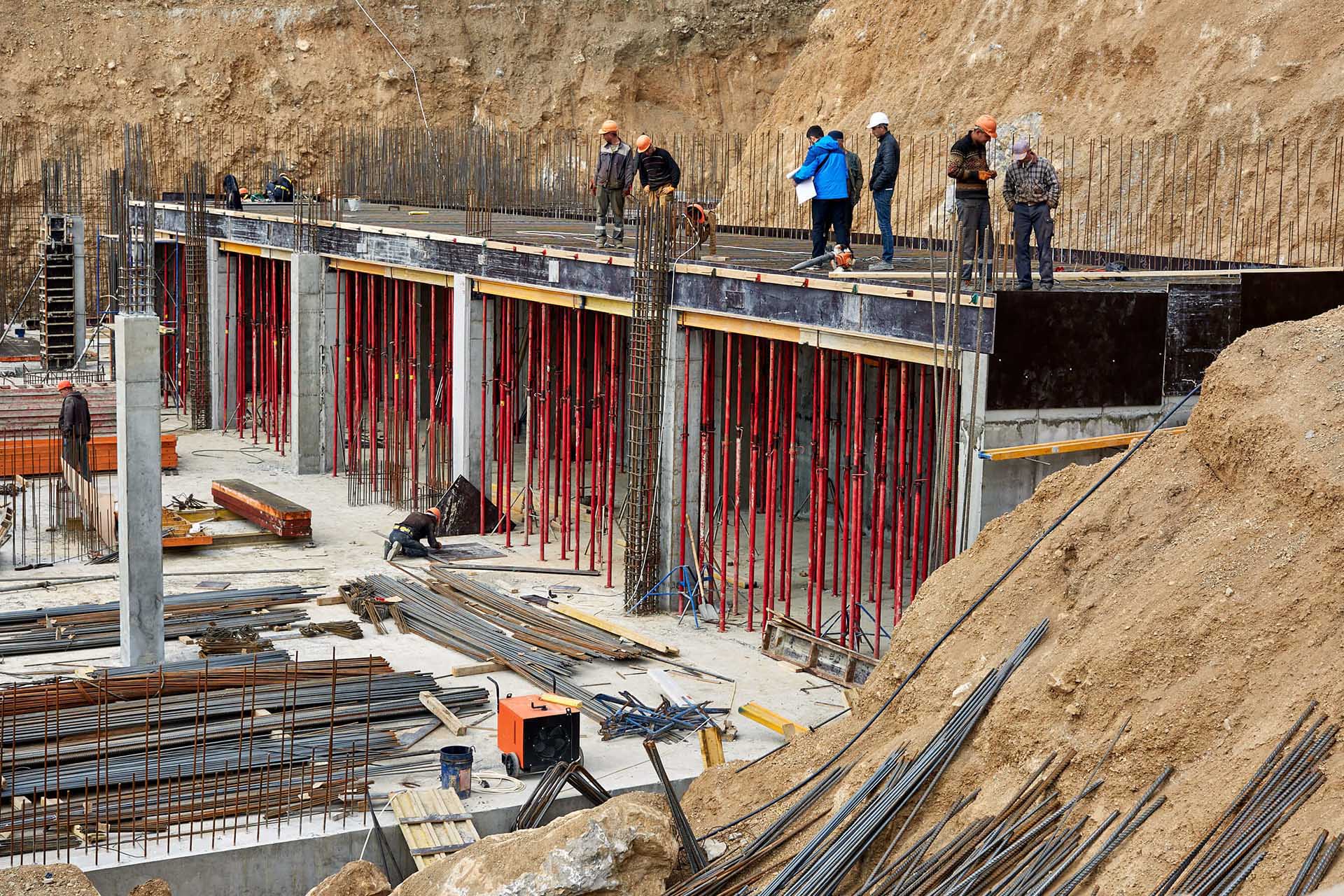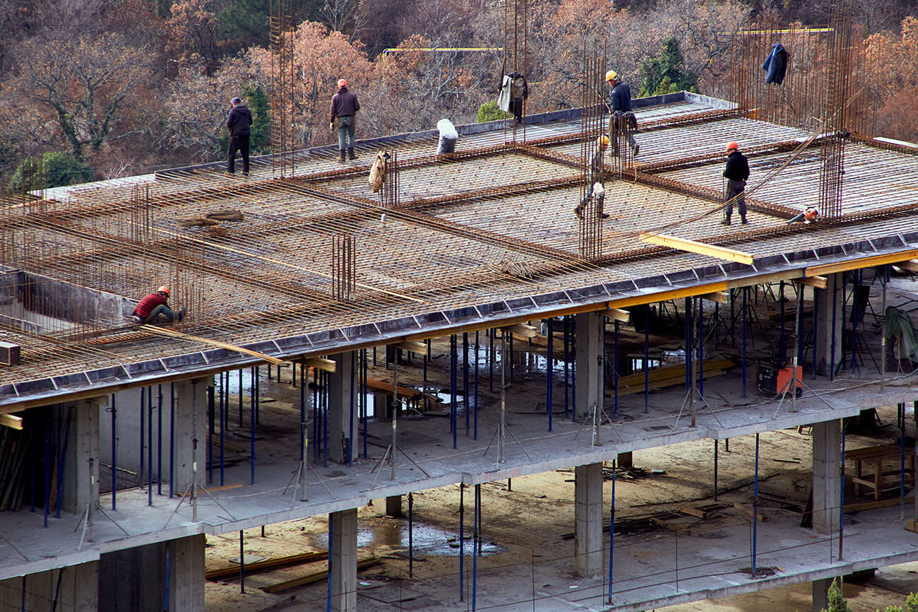 забетонированы перекрытие 4 этажа, колонны и стены 5 этажа, ставится опалубка и армируется перекрытие 5 этажа;