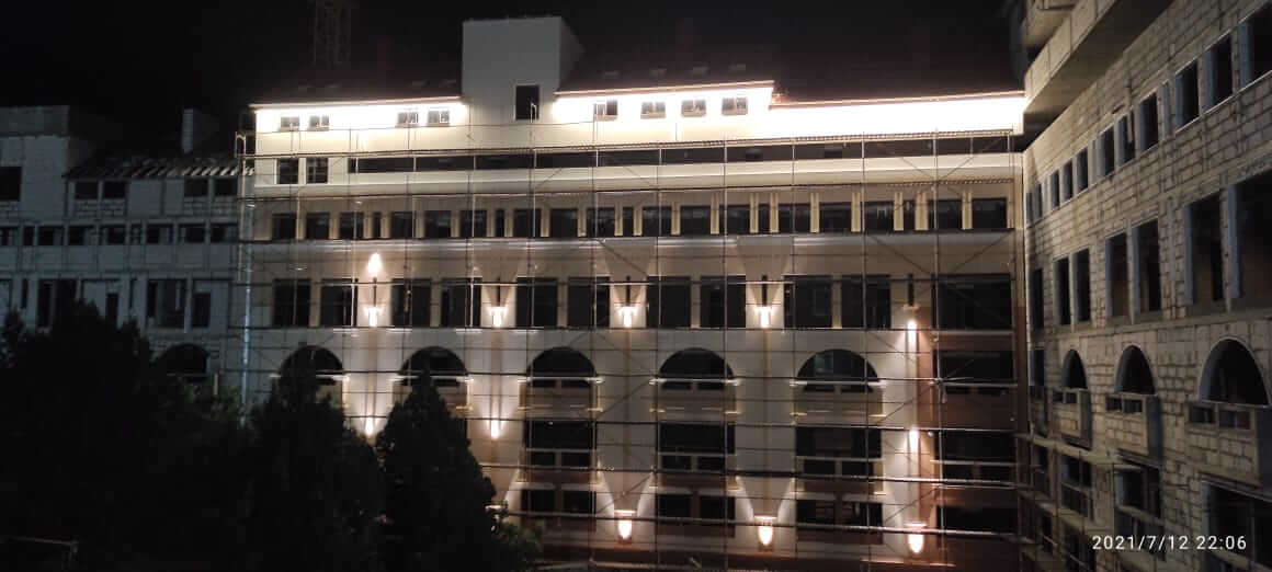 - устройство фасада, монтаж остекления в блоках 1 и 2;